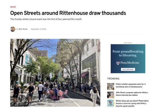 The impact of Open Streets has extended well beyond retailers and restaurants. Media coverage has been overwhelmingly positive, highlighting increased sales and foot traffic while capturing strong public enthusiasm for the program. More notably, several pieces have posed a larger question: can this become a permanent fixture in Center City.