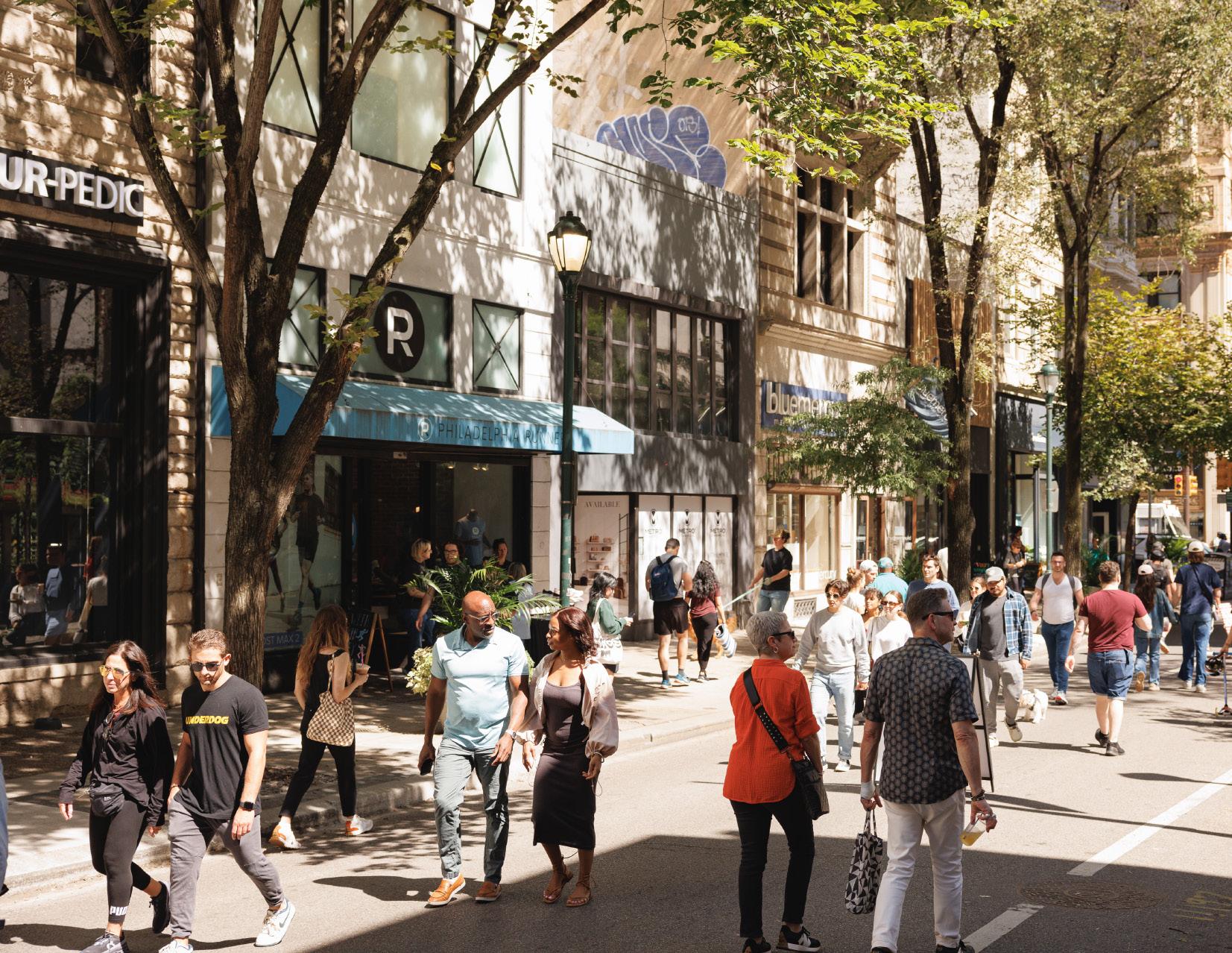 The area’s retail mix has evolved dramatically in recent years, as digitally native brands have responded to Center City’s rapid population growth which has resulted in a larger and younger population with more spending power than ever before. The area is singular among Philadelphia’s commercial corridors, competing directly with the broader region’s major shopping destinations (King of Prussia, Suburban Square, Cherry Hill) rather than