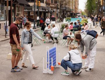 The pandemic itself proved to be an immense stress test on the resilience of downtowns across the country, leaving in its wake a series of challenges, from office retention and retail occupancy to broader quality-of-life concerns and a growing loneliness epidemic. At the same time, it revealed something essential: the critical role the public realm plays in sustaining the social and economic health of cities. Street closures, streeteries, and expanded outdoor dining—once