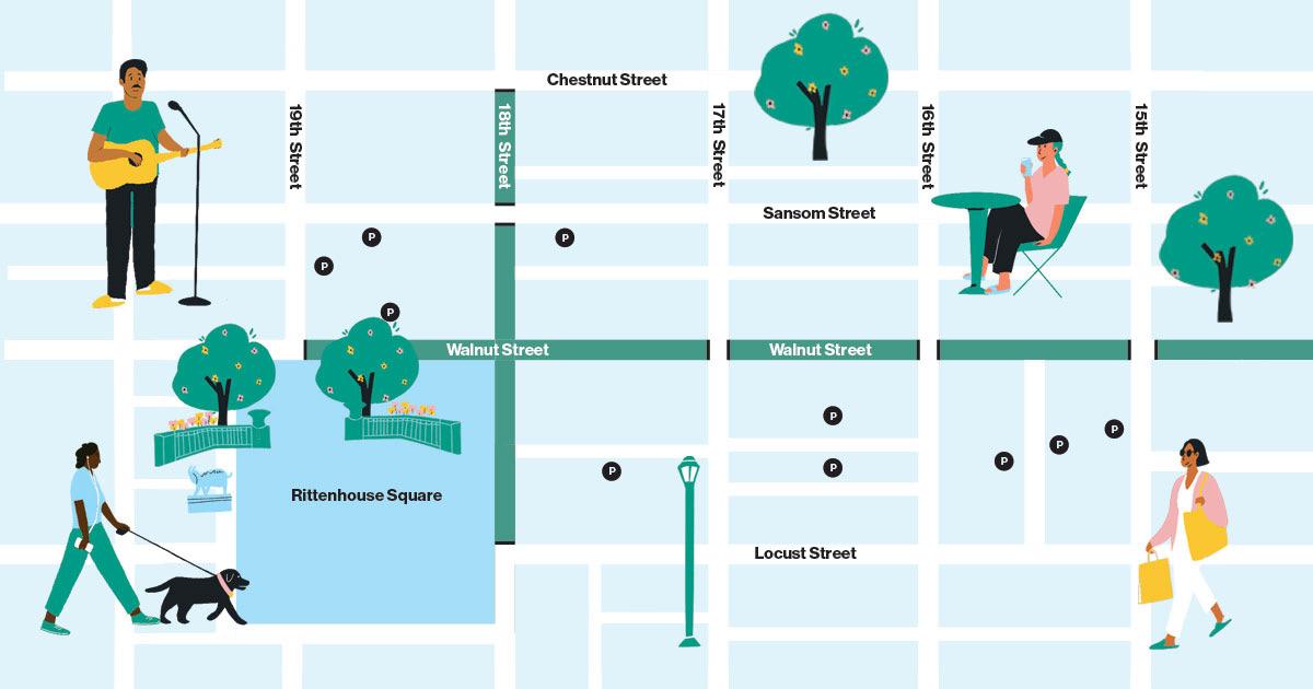 Anchored by Rittenhouse Square, one of Center City’s most beloved and heavily used public spaces, the area already functions as a natural gathering place, making it well suited for a program centered on pedestrian activity and shared civic experience.