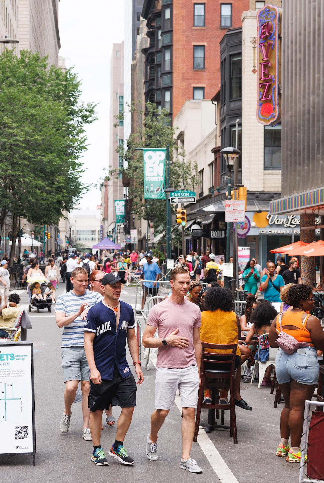 Center City’s highly walkable grid and diverse mix of retail, restaurant, residential, office, cultural, and open-space uses create an ideal framework for a temporary car-free streets program such as Open Streets.
