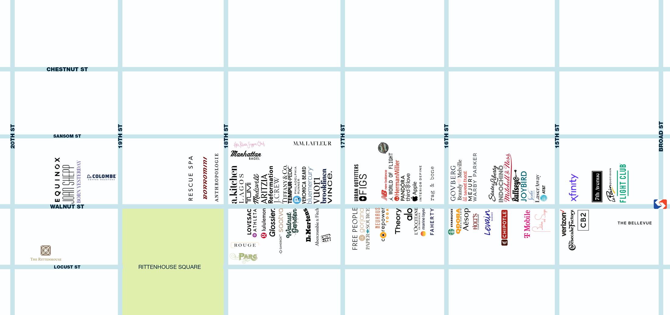 West Walnut and 18th streets, known colloquially as Rittenhouse Row, together make up one of Philadelphia’s most robust retail corridors, home to a mix of local and national retailers and many of the region’s most celebrated restaurants and cafes.
