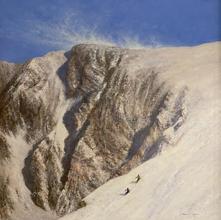 I first met Pem Dunn when he showed up to teach his Inter/Advanced Oil Painting class on a snowy Tuesday in February 2020. The classroom was buzzing throughout the morning with a combination of art critique, “Have you tried this?” instruction, and coffee-hour catchup. Everyone learning from each other under the kind tutelage of Pem Dunn. Those who know Pem know him to be not only a gifted artist but a storyteller and a community builder, always welcoming everyone warmly into his classroom. Over the years, I’ve heard stories of Pem’s hiking and skiing adventures, which are so beautifully documented in his paintings. The feeling of snow blowing off a barren ridgetop—that’s a Pem Dunn painting!