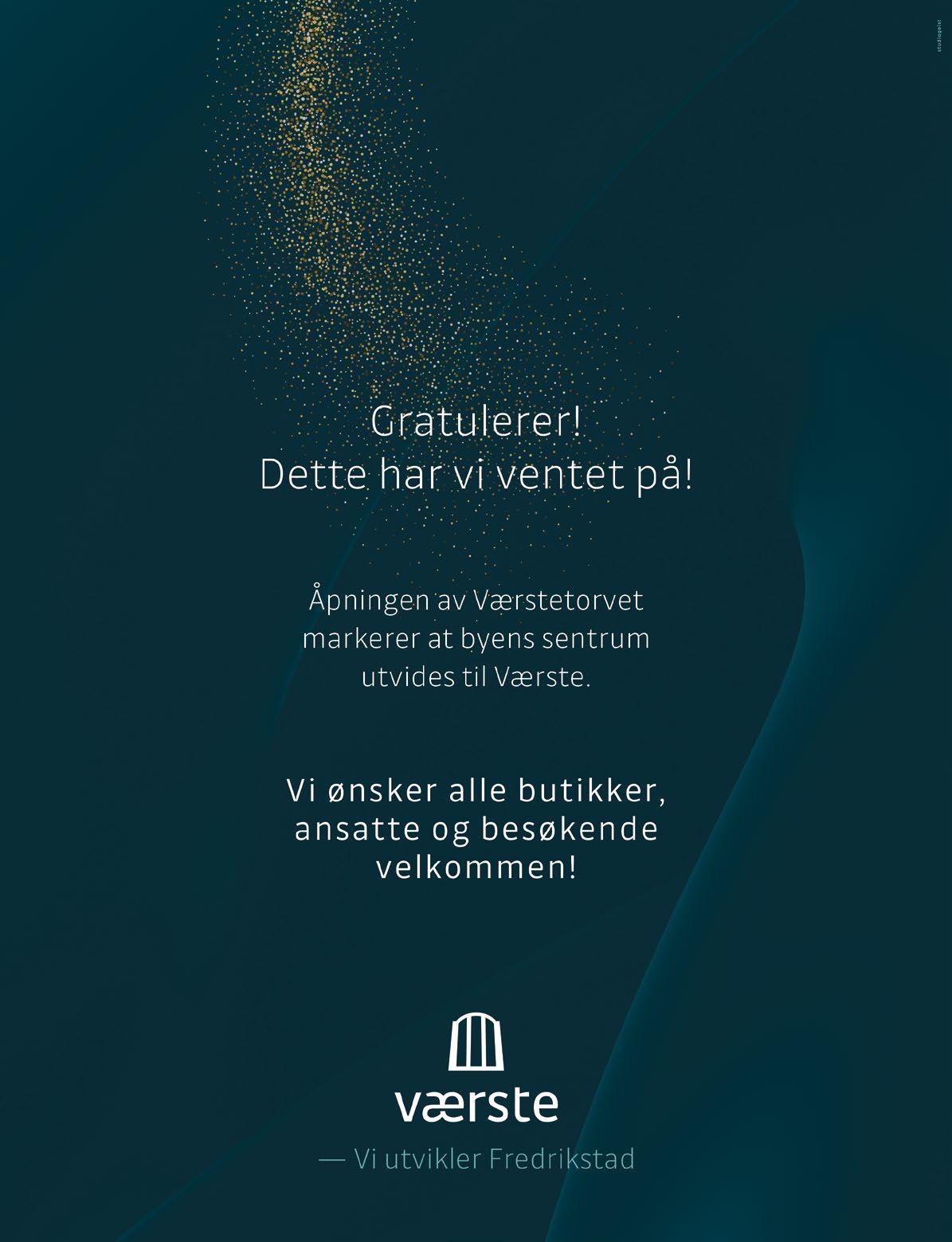 I tillegg til å ønske deg velkommen så vil jeg gi en ekstra klapp på skulderen til de som de siste 2 årene har stått på dag og natt for å få Værstetorvet ferdig. Ingen nevnt, ingen glemt, men dere har alle lagt ned en fantastisk innsats for å gi byen vår noe helt unikt!