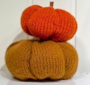 Vi strikker gresskar og inviterer unge og gamle til å være med. Garnpakke gresskar: 100,-