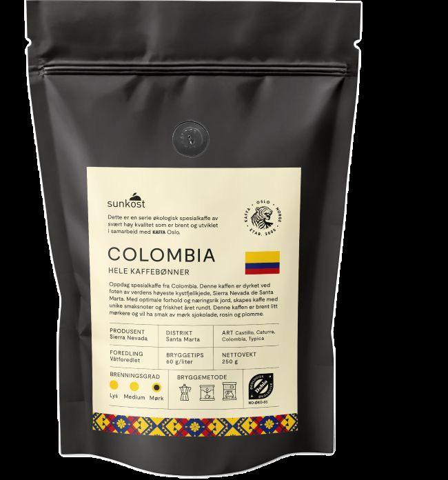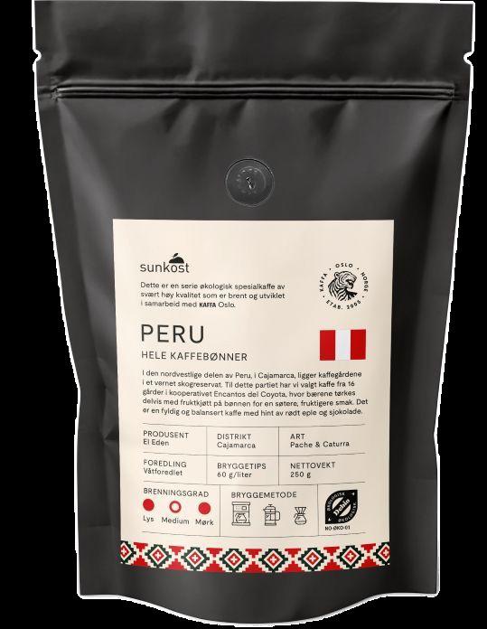 Prøv Sunkosts egen økologiske kaffe, brent og utviklet i samarbeid med KAFFA Oslo, med bønner fra Etiopia, Peru og Colombia. Vi har også smaksprøver på chiapudding med topping.