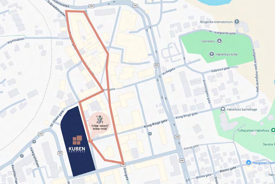 Her ser du kartet som viser tirsdagens trilletur. Oppmøte utenfor Lindex kl. 11.30 for en kort og hyggelig trillerunde i nærområdet.