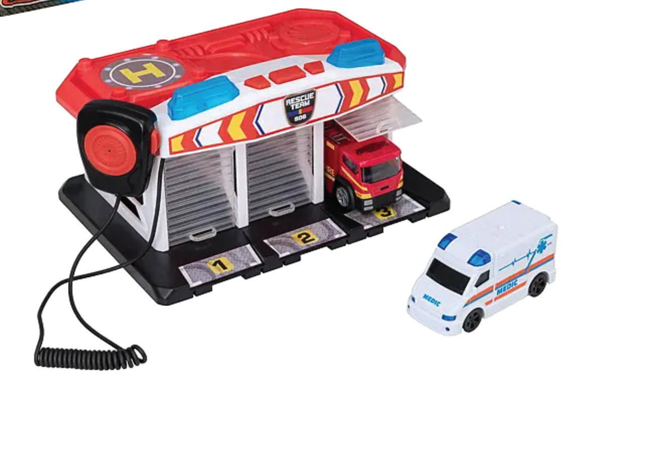 Garasje med utrykningskjøretøy og mikrofon 299,-