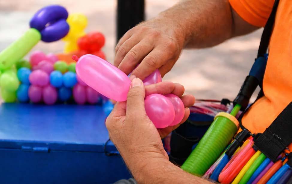 Gratis ballongmoro for barna! Vår dyktige ballongartist lager morsomme og fargerike ballongfigurer – kanskje en hund, et sverd eller en blomst?