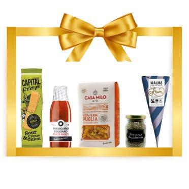 (Inneholder: Pasta, tomatsau s, krydder, potetgull og økologisk sjokolade. Verdi: 281,-)