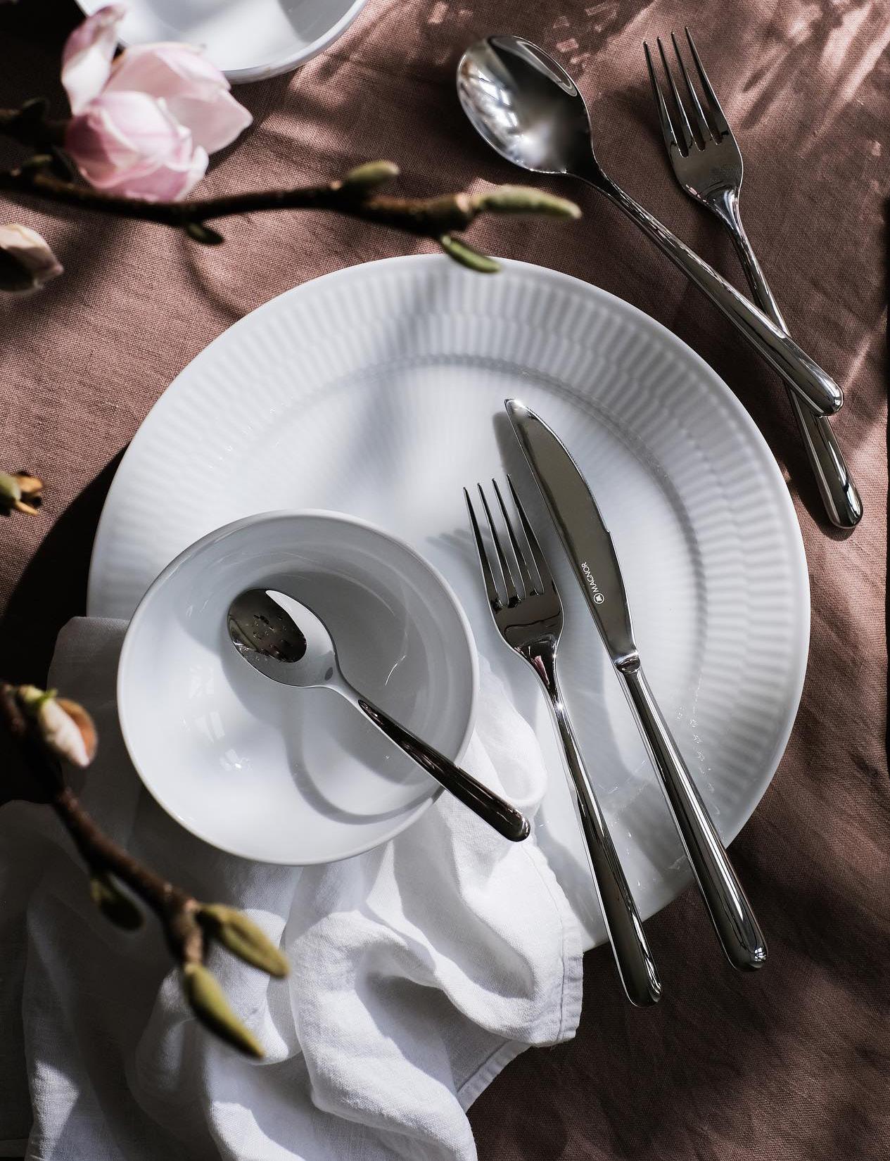 Kaketallerken 19 cm, frokosttallerken 22 cm, dyp tallerken 22 cm og 25 cm, middagstallerken 25 og 28 cm