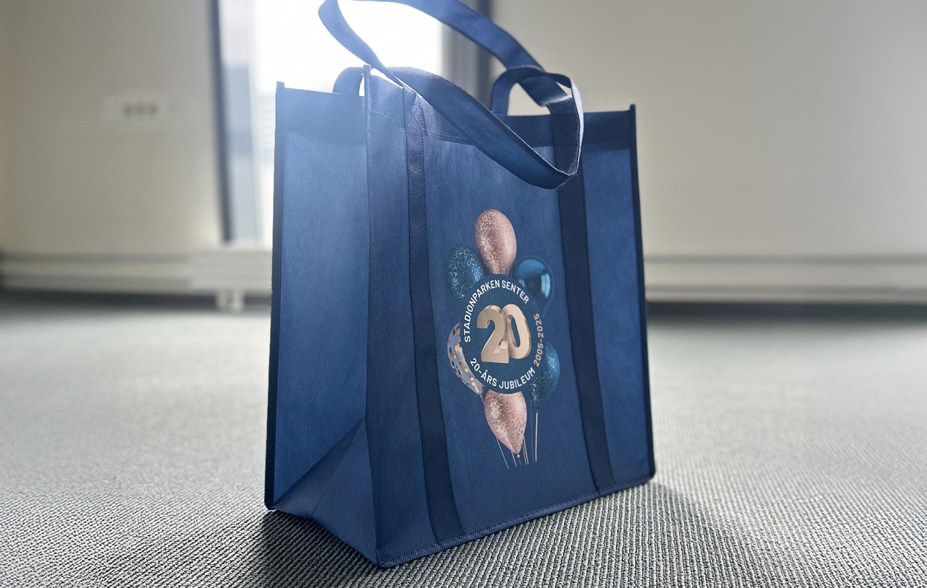 Alle som handler for over 200,får et jubileumshandlenett. Gjelder så langt lageret rekker
