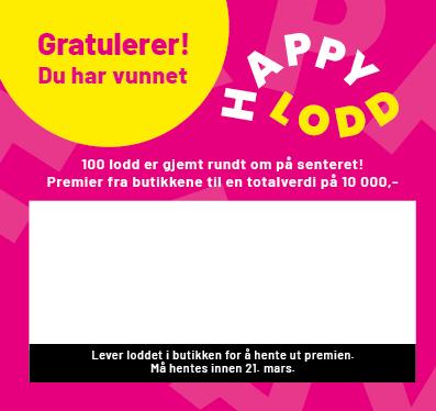 100 Happy lodd er gjemt rundt på senteret. Delta i jakten!