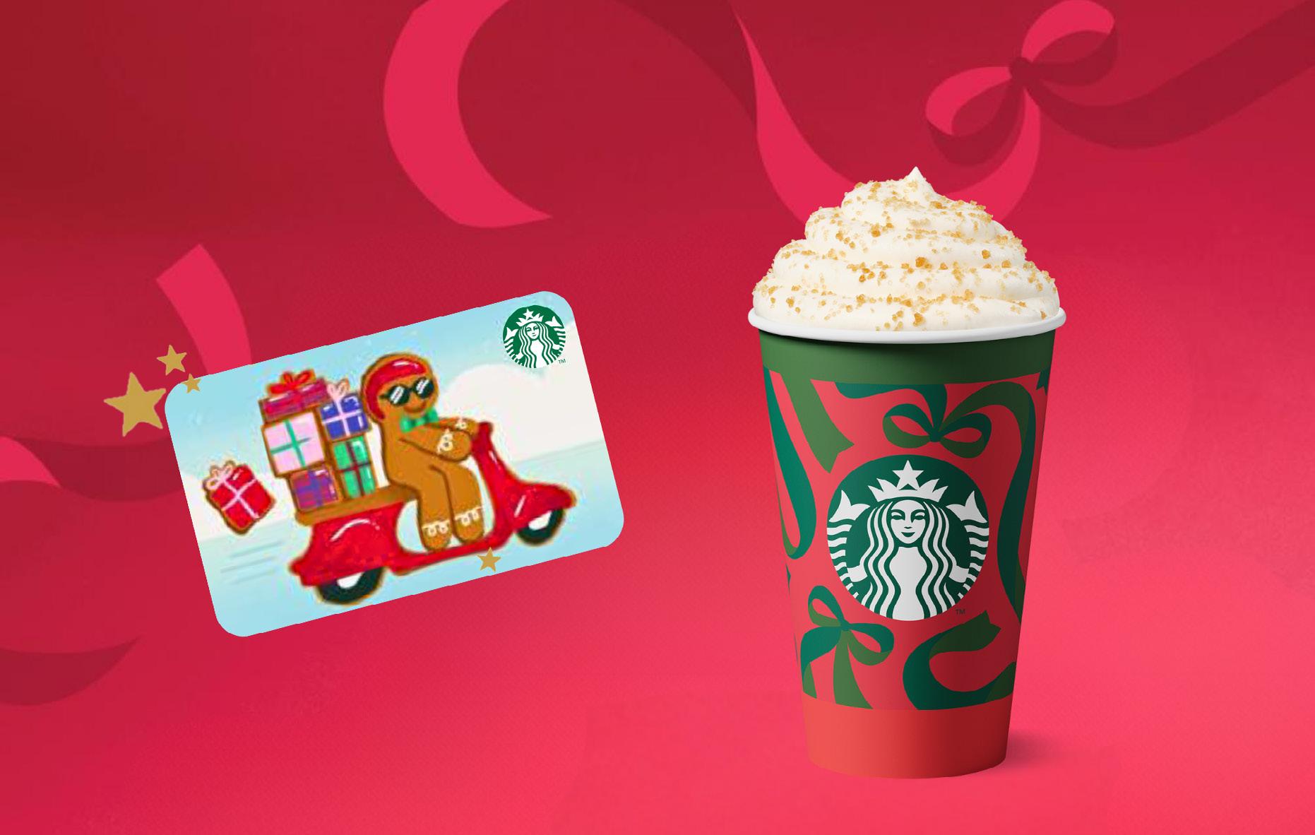 Last opp et Starbucks kort med 200,og få med en gratis valgfri juledrikke (Gingerbread Latte, Toffee Nut Latte, Chocolate Mousse Latte)