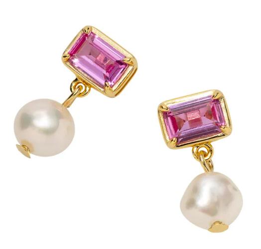 Øredobber i forgylt sølv Med ferskvannsperle og rosa sten Ord. pris 399,-