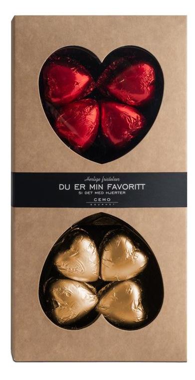 “Du er min favoritt - si det med hjerter” Nydelig sjokolade fylt med sjokoladeganache og flytende karamell 229 90