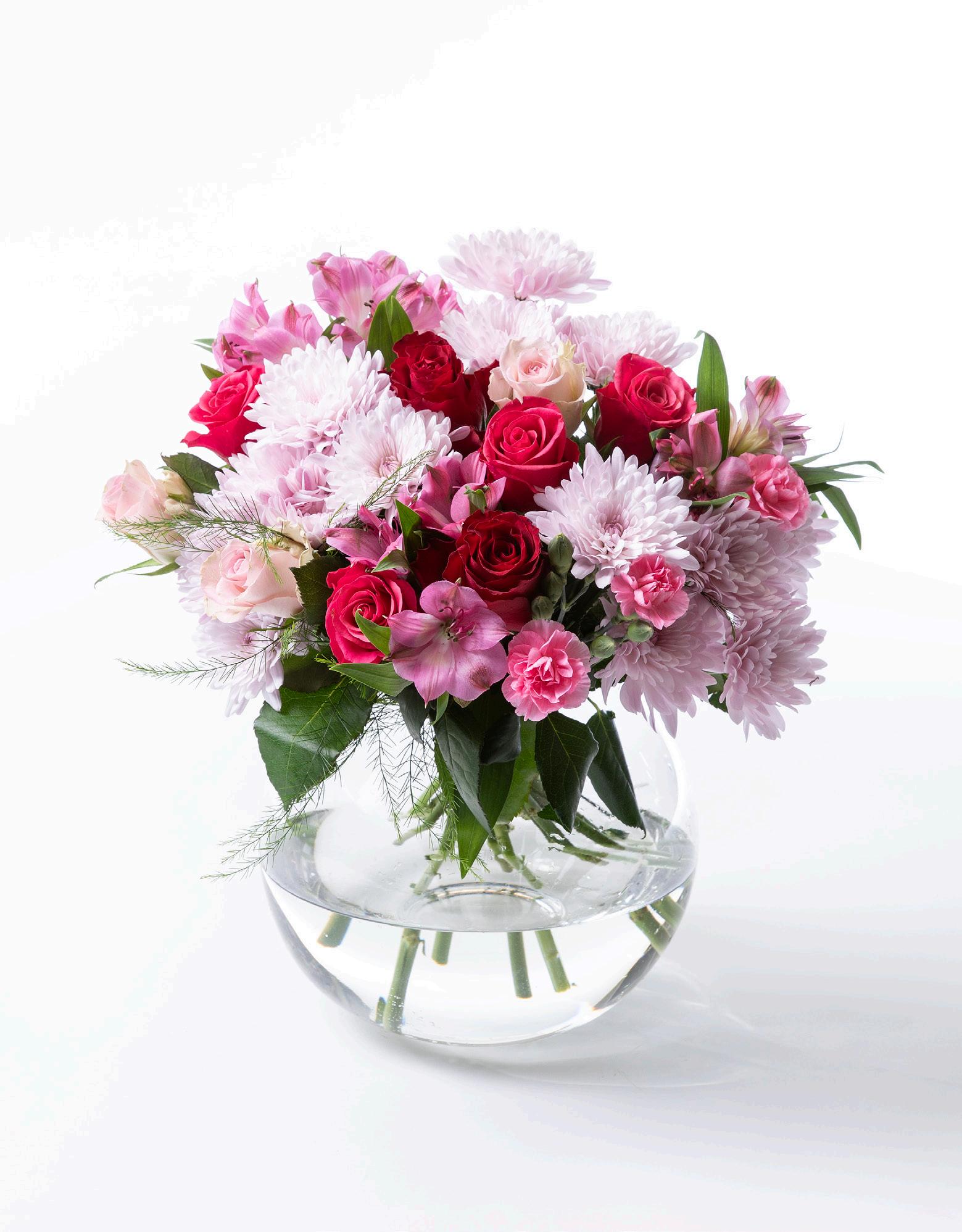 Bukett med roser og krysantemum