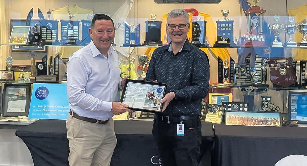 Central Coast Council presented Surf Life Saving Central Coast (SLSCC) with a $116,000 cheque on October 20 at Toowoon Bay Surf Life Saving Club, the first instalment of a twoyear sponsorship.