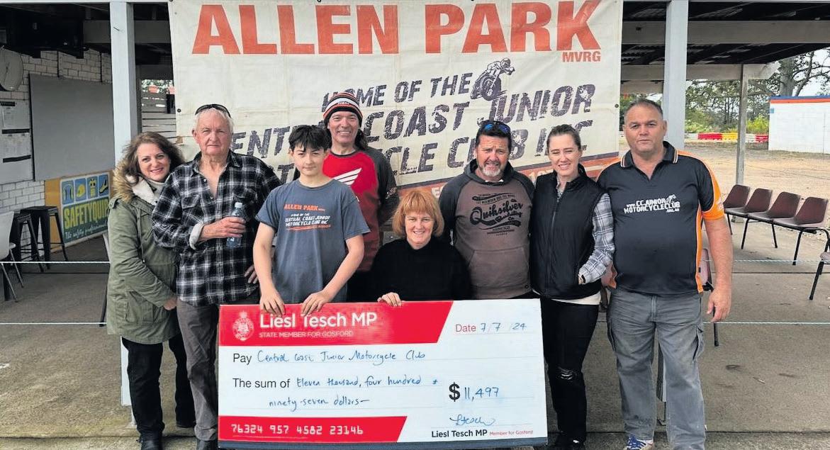 Member for Gosford Liesl Tesch with members of the Central Coast Junior Motorcycle Club