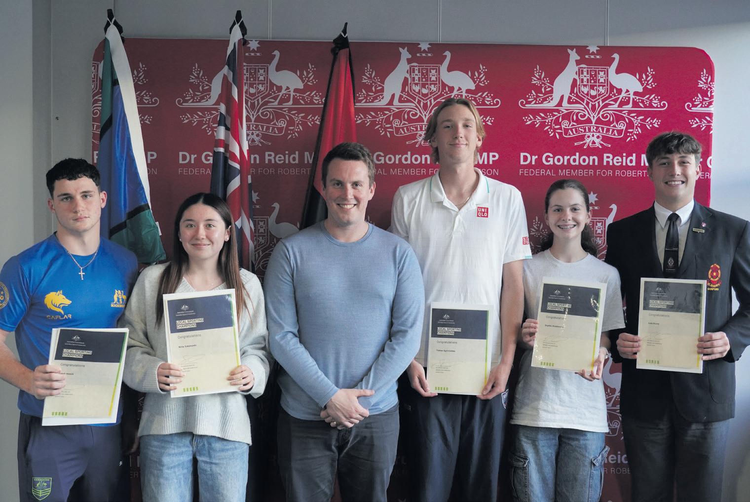 From left: Caleb Gouck, Nina Takahashi, Member for Robertson Gordon Reid, Tobias Eyrl-Collins, Sophie Middlemiss and Kale Puata