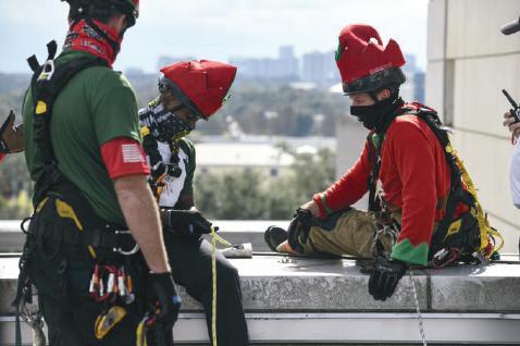 Santa Claus and Mrs. Claus made a special visit to AdventHealth for Children, and they brought a team of nimble elves with them to help patients celebrate the holiday season. The annual Elf Rappel event featured Friends of the North Pole in the form of first responders from Orlando Fire Department and Orange County Fire Rescue Department. They brought fire trucks, tall ladders and rappelling gear to see children up close through the windows of AdventHealth for Children. This is the fourth year for the event.