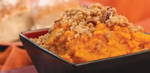 Meanwhile, mix flour, sugar, butter in a medium bowl, stir in pecans. Mixture should be coarse. Spread evenly over sweet potato mixture and top with marshmallows. Bake in an oven preheated to 350F about 30 minutes, or until golden.