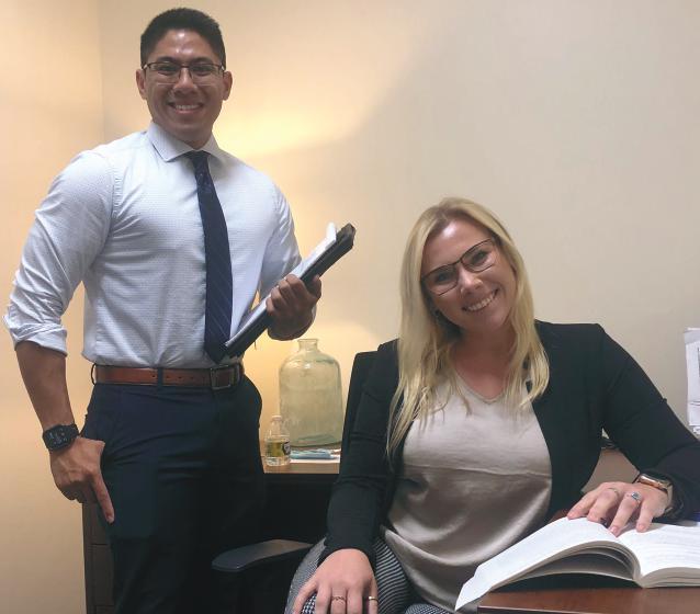 Since beginning the internship, Mathias and Velasquez say their 40-hour work weeks are full. In addition to working in primary care, the students also conduct neuropsychological assessments with Dr. Jeffrey Reddout, Winter Haven Hospital neuropsychologist, on patients with dementia, TBIs, strokes, and other neurocognitive conditions. They also work in the primary care clinic providing assessment and treatment services.