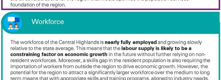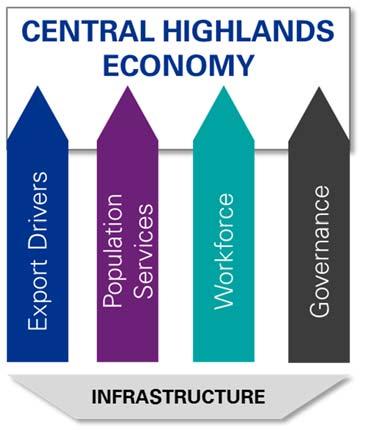 The CHEMP outlines a robust 30 year vision for the Central Highlands economy that is underpinned by four key pillars of the region’s economy – Export Drivers, Population, Workforce and Governance. This vision has been developed to build on existing strengths and opportunities, and presents an opportunity for continued partnerships with government and the private sector to propel the Central Highlands economy towards a strong future for the community by 2047.