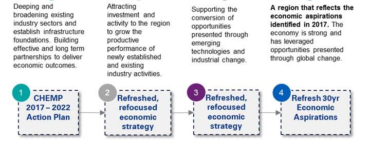 The CHEMP 2017-2022 Action Plan will assist CHDC, CHRC and other partners to guide economic development activities on a strategic pathway for the next five years with clear direction to achieve the longer term 30 Year Vision for the region’s economy and local community.