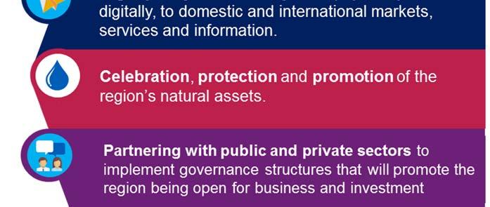 • Investigate opportunities to improve the efficiency of planning and approvals frameworks to promote investment and development activity within the region.