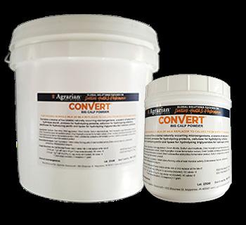 CONVERT™ BIG Calf Powder can be supplemented with colostrum at birth and then mixed with either whole milk or any milk replacer up to weaning. The BIG Calf powder supplements DFM, egg-based specialized proteins and enzymes. Mixing 5g BIG Calf Powder with colostrum will provide the same beneficial components as 15ml of the Day-One Calf Gel.