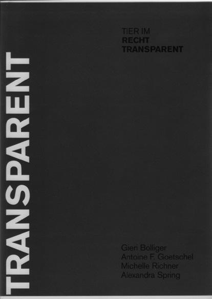 GIERI BOLLIGER, ANTOINE F. GOETSCHEL, MICHELLE RICHNER, ALEXANDRA SPRING, TIER IM RECHT. TRANSPARENT, SCHULTHESS, STIFTUNG FÜR DAS TIER IM RECHT, ZÜRICH, 2008.