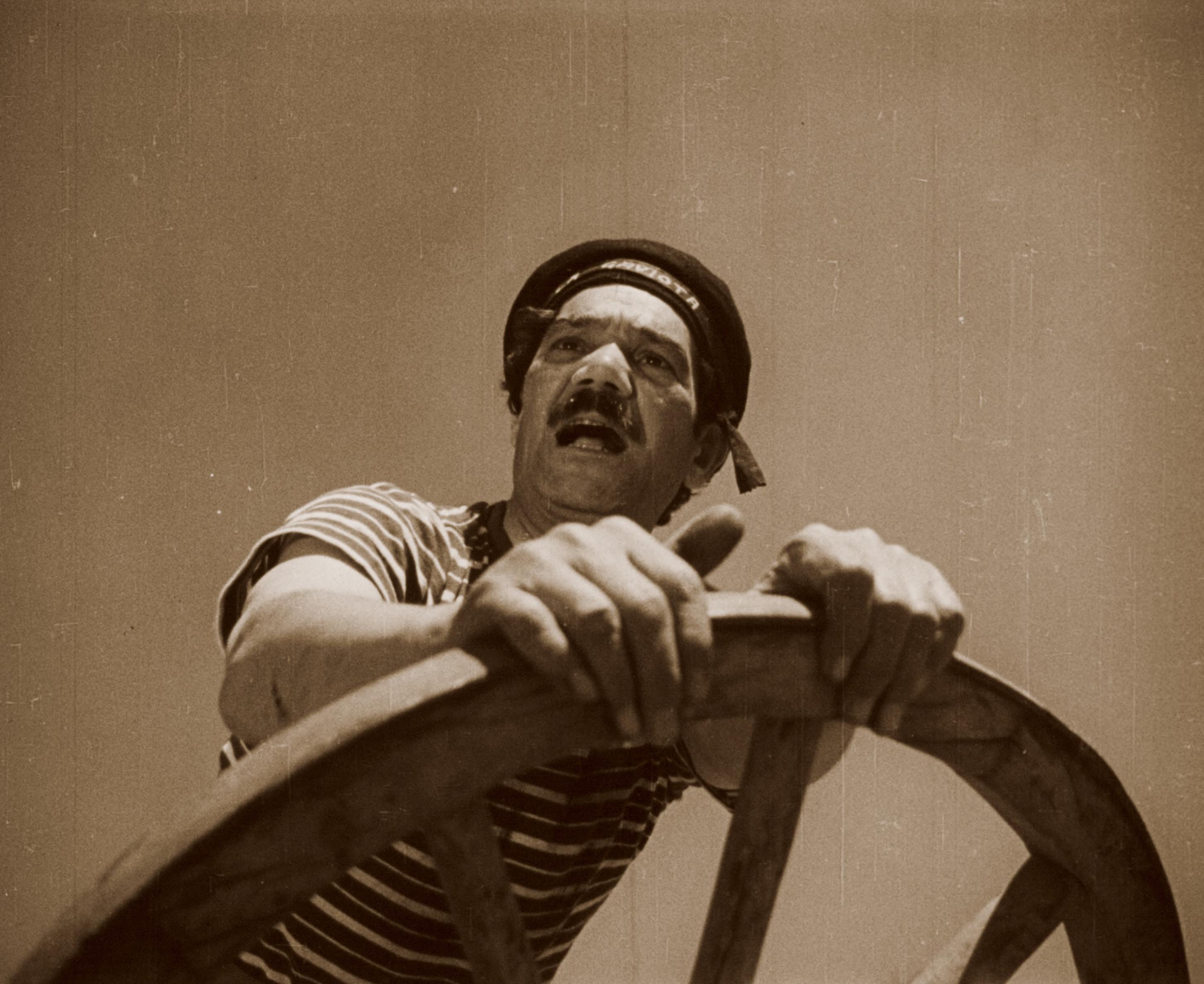 Bohr como Chaplin en Los Parafinas, el segundo corto de ficción que dirigió. Acá además debutó como actor de cine (Archivo Cineteca Nacional de Chile).