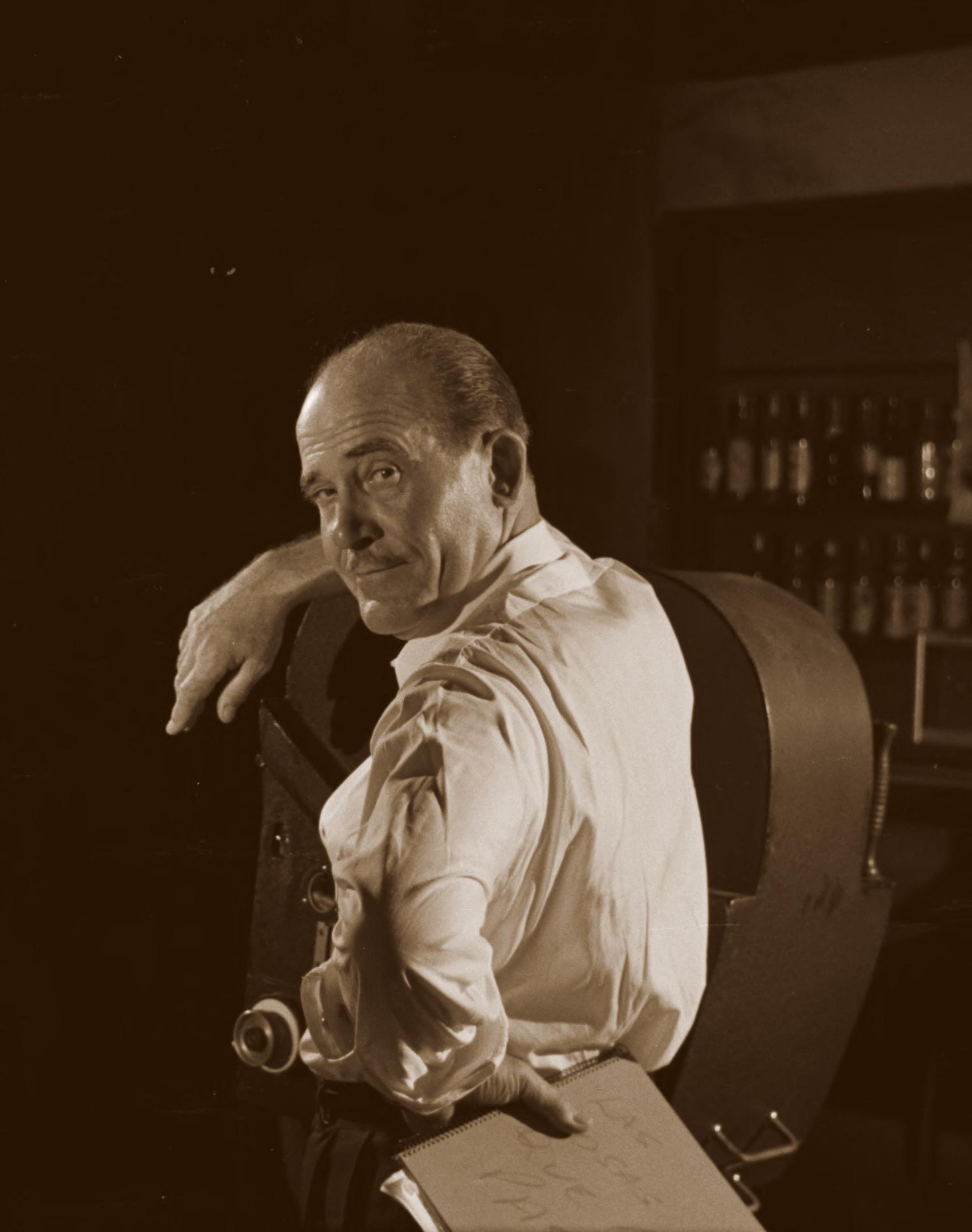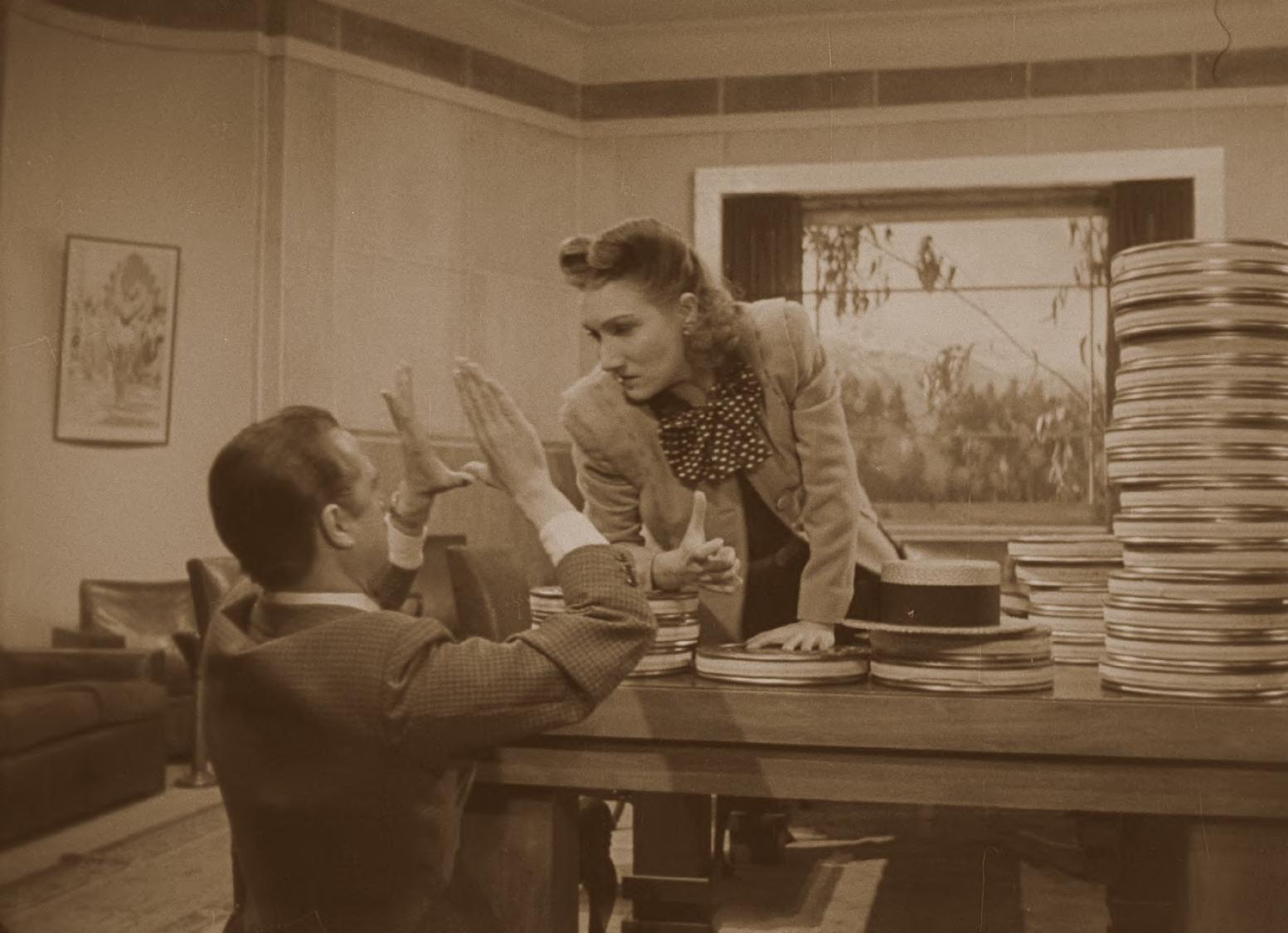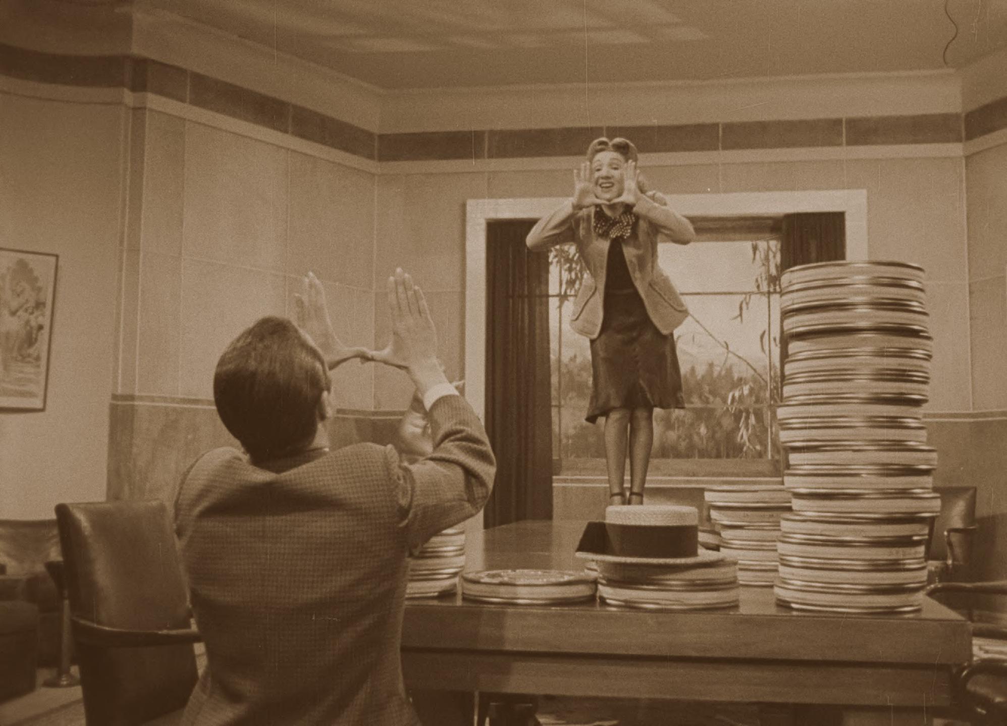 do como está en sus funciones directoriales. Hasta que advierte la “presencia” de su audiencia adelantada. Se da vuelta, mira el lente, y empieza a comportarse como el anfitrión de su propia película, mientras se inicia un travelling que nos lo va acercando. Gesticulador y sonriente, recibe a los espectadores. Y hasta los regaña con amabilidad:
