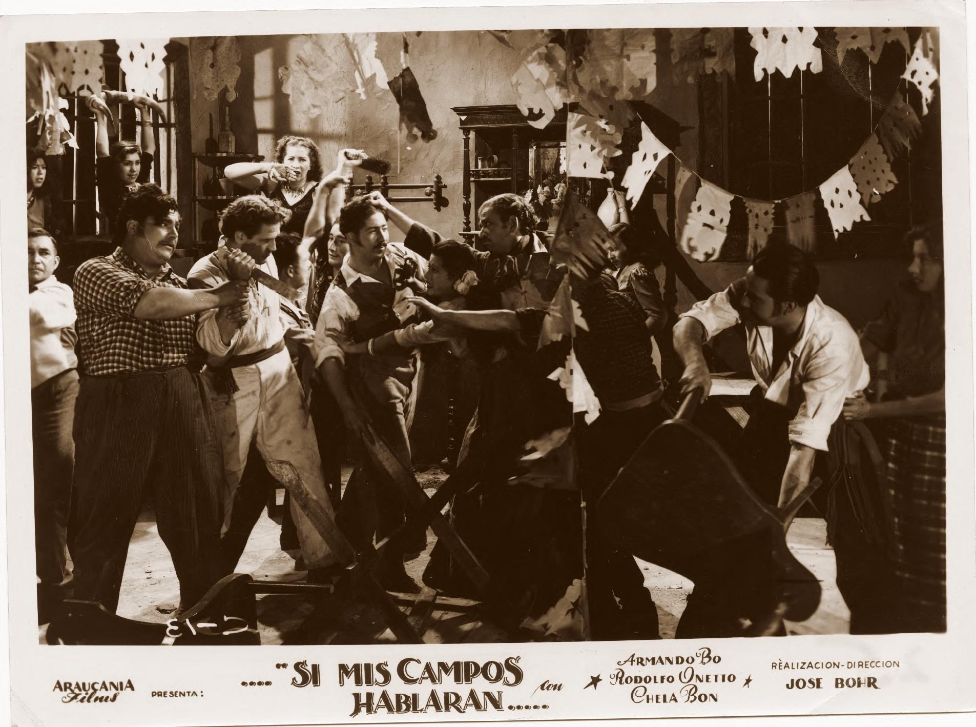 Como los directores hollywoodenses que, aun trabajando en un sistema de estudios se lanzaron a filmar en medio de la naturaleza (difícil no pensar en el Raoul Walsh de La gran jornada, 1930), Bohr se tiró al agua. Aunque se diría que no tuvo más remedio que negociar con la realidad y usar la geografía como elemento del drama. En el caso de esta película, hubo que trabajar con lo que había: por un lado, la producción consiguió que la Caja de Empleados Públicos y Periodistas facilitara el uso del fundo Carmen Bajo (Melipilla); por otro, la falta de recursos técnicos –ausencia de generadores para iluminar los interioresobligó a filmar en exteriores y a orquestar escenas como esta. En sus memorias, cuenta Bohr que tras ver pasajes como el acá descrito, algunos críticos hablaron de “neo-verismo”, pero que a él, dado “lo escuálido de nuestros presupuesto”, se le daba mejor hablar de “sin-dinerismo” (Bohr, 1987: 237).