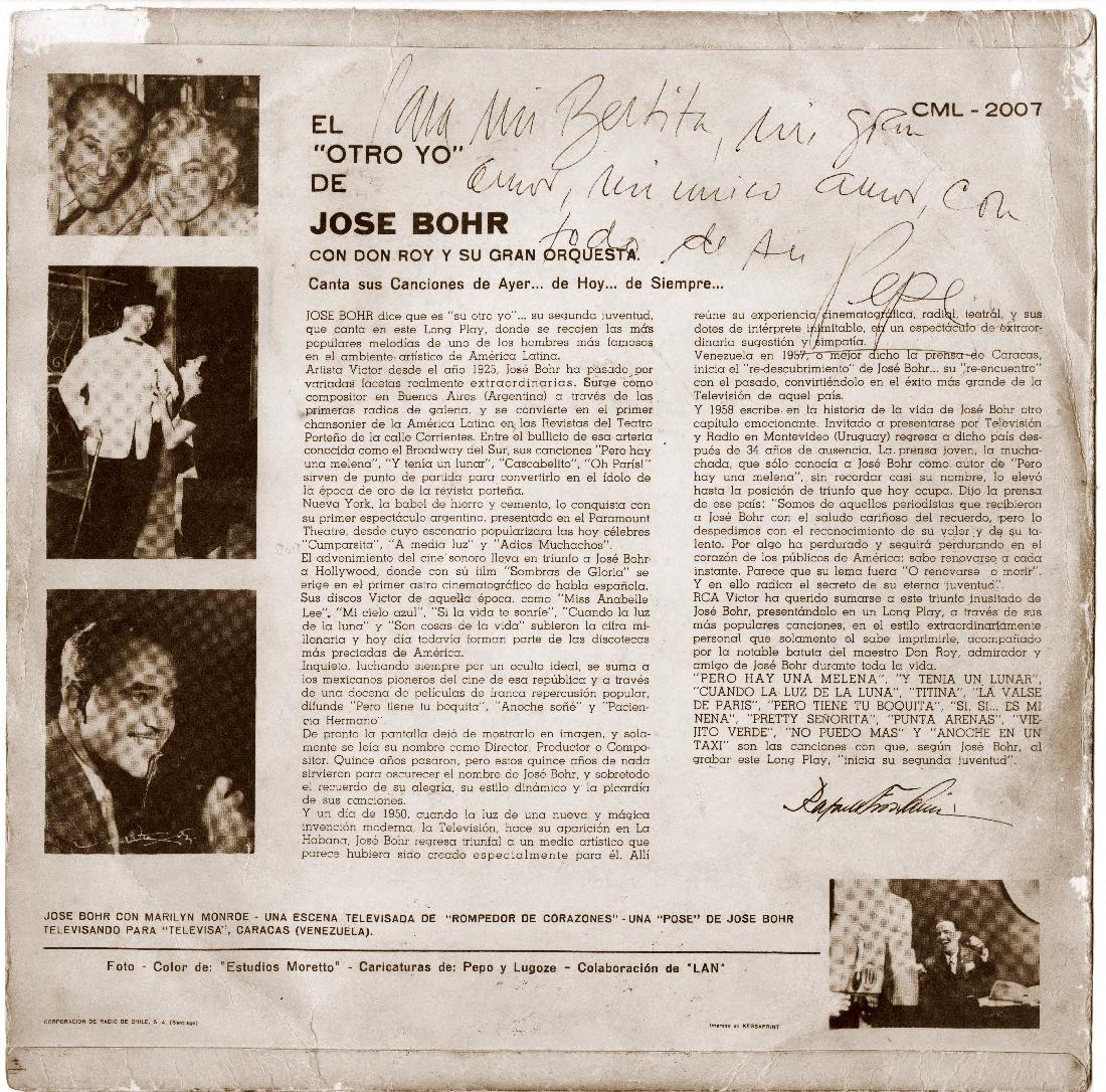 La segunda parte del libro es un recorrido por el archivo de José Bohr, que navega entrelazado con la puesta en valor de su historia personal. “Biografía ilustrada”, tarea a cargo de Marcelo Morales, especialista en documentación de la Cineteca Nacional de Chile, nos pone en contacto con las fuentes primarias, con los metadatos, con la “efímera” (recortes de prensa, programas de mano, notas y otros elementos) y con valiosos hallazgos del proceso de investigación, como discos de vinilo, primeras ediciones de libros del autor y el álbum familiar, con fotografías hasta ahora inéditas, que fueron generosamente entregadas por Daniel Bohr, hijo del cineasta, a la Cineteca Nacional de Chile.