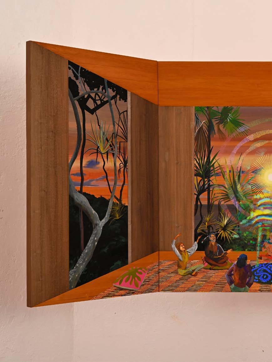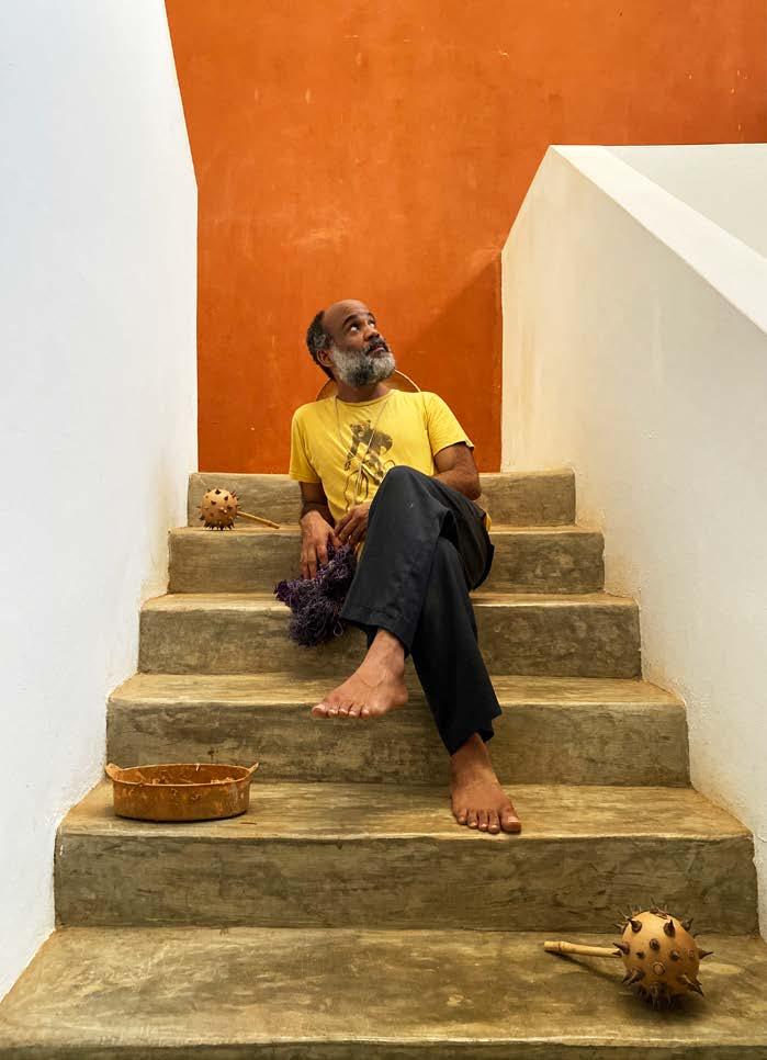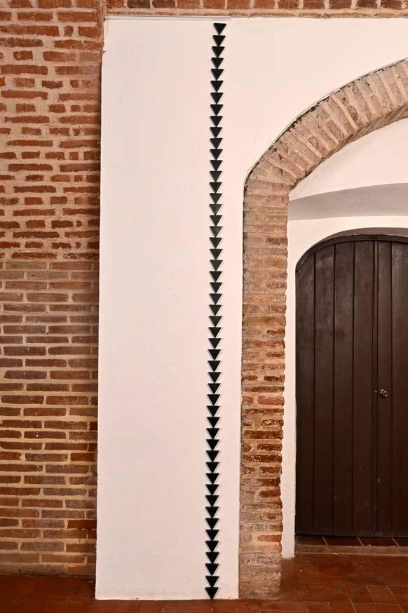 projects has emerged from the silent reflections he holds there. And almost all of them, ironically, are expansive, extroverted, gregarious. From there came the sinuous forms of Centinela (Centinel), the crimson flame-shaped sculpture that greets travelers entering his native La Vega; the textile lungs of Hotel Mercedes in Agonía de la memoria (In the Throes of Memory), a site activation that breathed new life into a disused building in Santiago de los Caballeros —after winning the 28th Concurso de Arte Eduardo León Jimenes, the spot was acquired by financial institution Banreservas as the space for its first cultural center in the northern region; and La procesión va por dentro (The Procession Within), a series of sculptures, video installations and fiberglass drawings that reached UNESCO’s headquarters in France and later Martinique. His latest project, Membranas del santuario (The Sanctuary’s Membranes), exhibited at the 2025 Cuenca Biennial in Ecuador, required the voyeuristic collaboration of attendees. “I understand that faith does manifest in those moments of visualization: that’s when the desires and hopes I keep quiet turn into concrete things,” he concludes. b