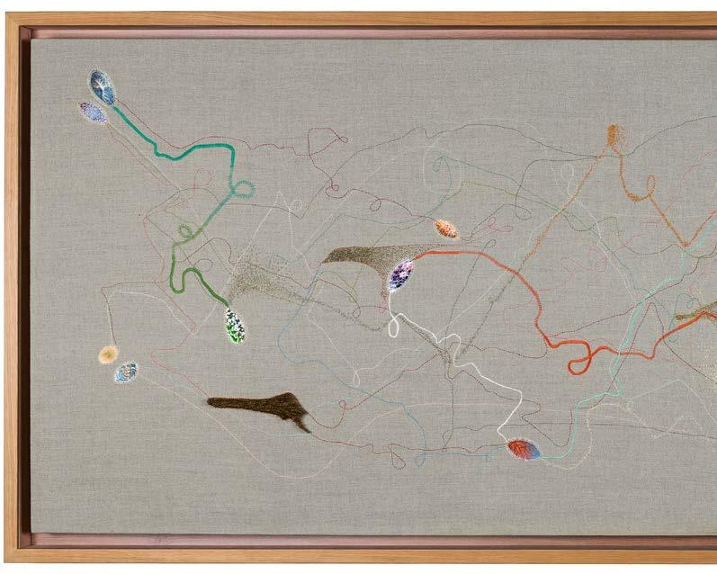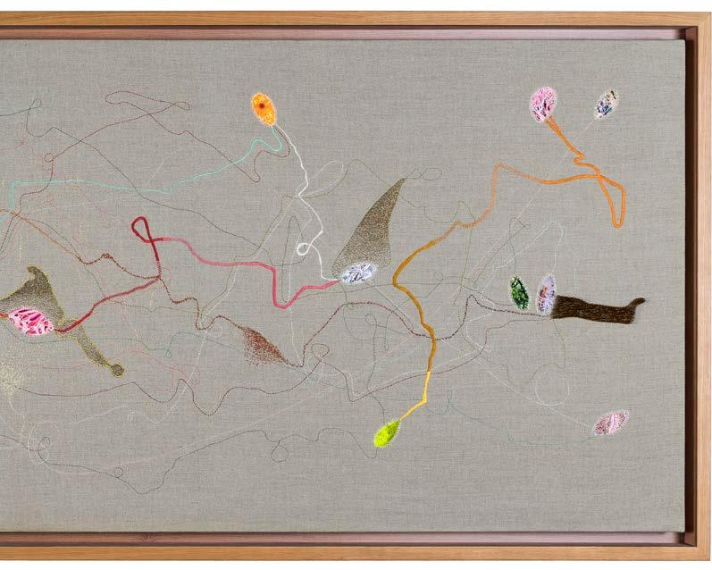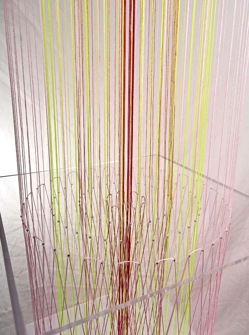 An acrylic cube might seem like a sterile container from the outside, but in Patricia’s work, it's the nest that creates the possibility for something to exist. Thread, one of the recurring materials in her body of work —“which evokes the opposing concepts of fragility and persistence,” as she explains— descends from above, amorphous and disordered... and yet it takes shape within the matrix of that cube. “So Genesis captures the exact moment in which something begins to exist.” For an artist whose creative method relies on the meditative trance state in which hands take control over mind, having the ability to freeze that instant is to see her own intuition transformed into a tangible object.