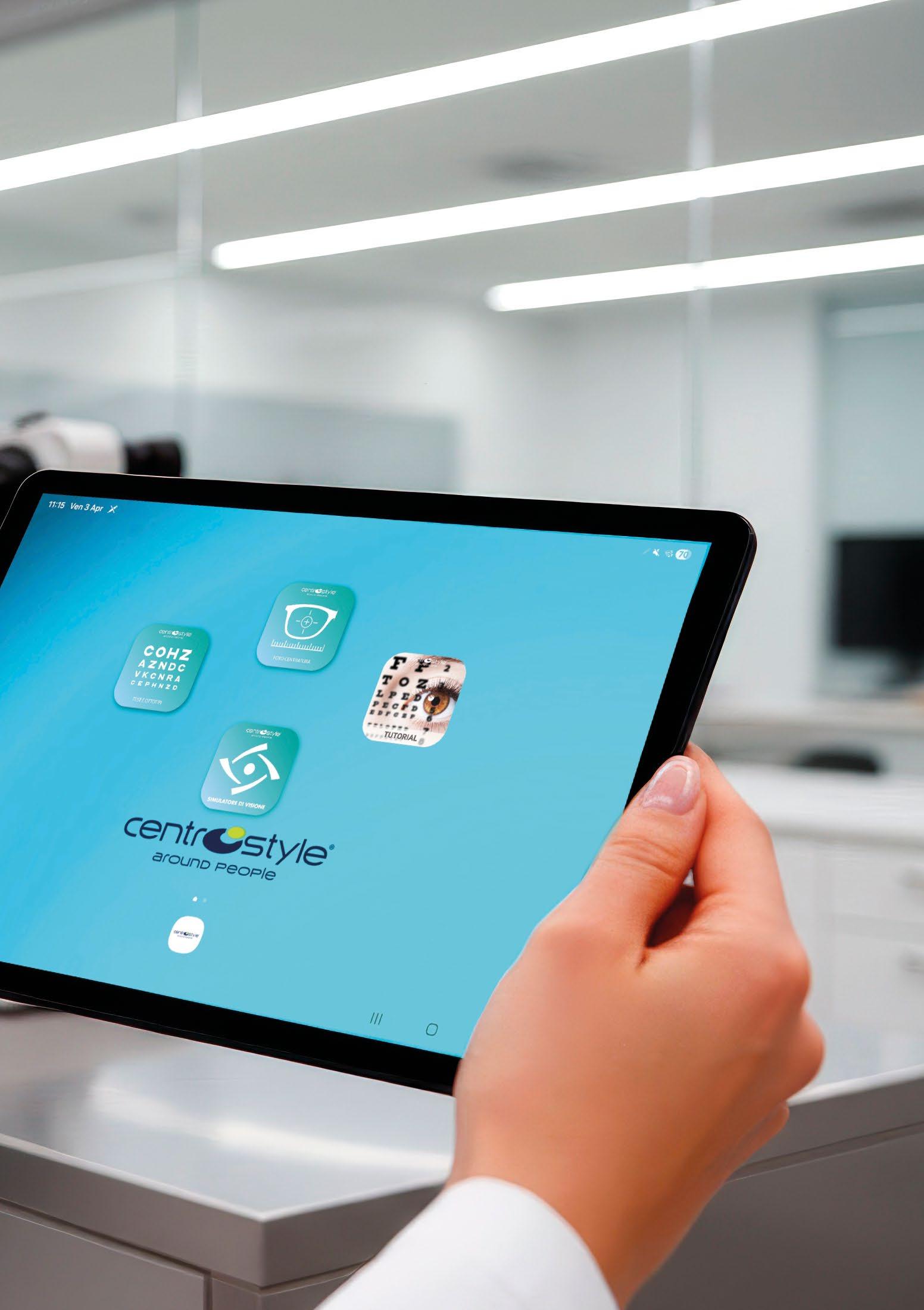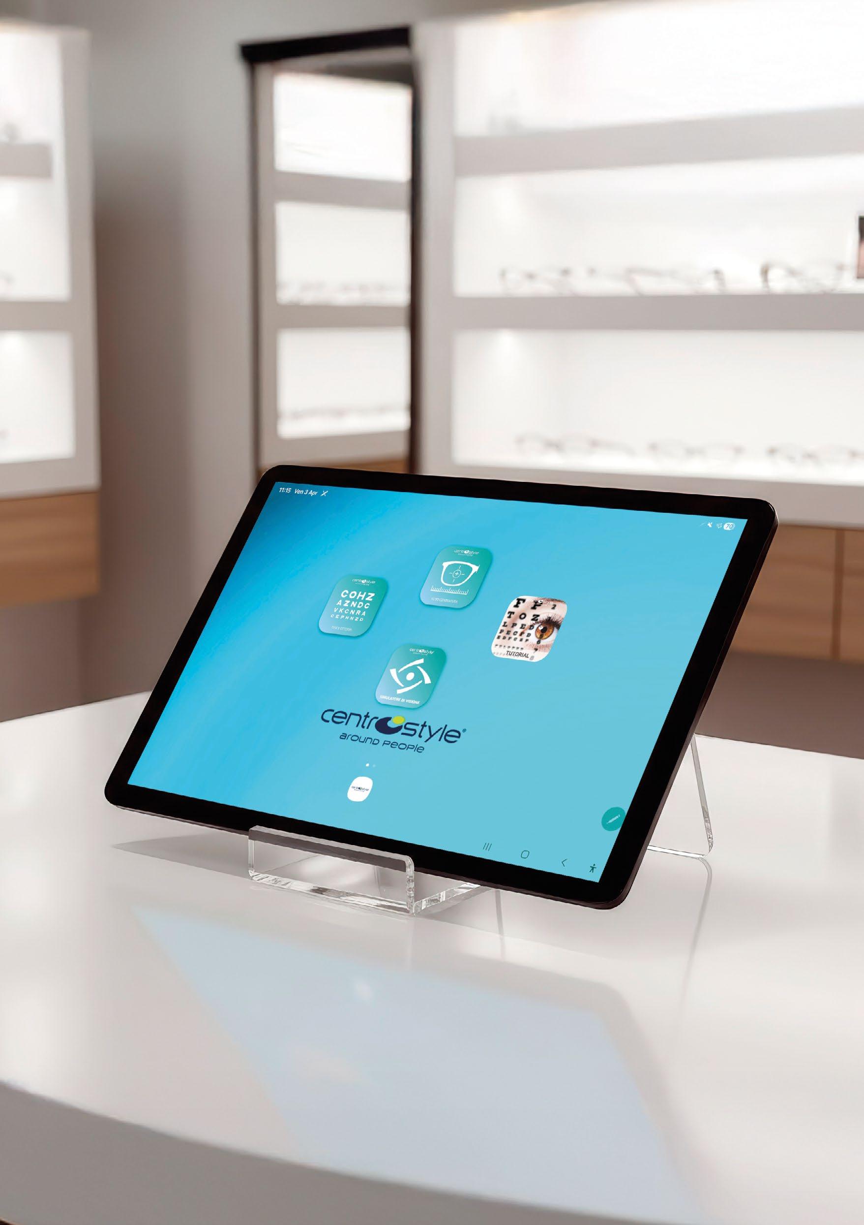 Digital Vision Care Tablet completo di applicazioni e custodia per il supporto.