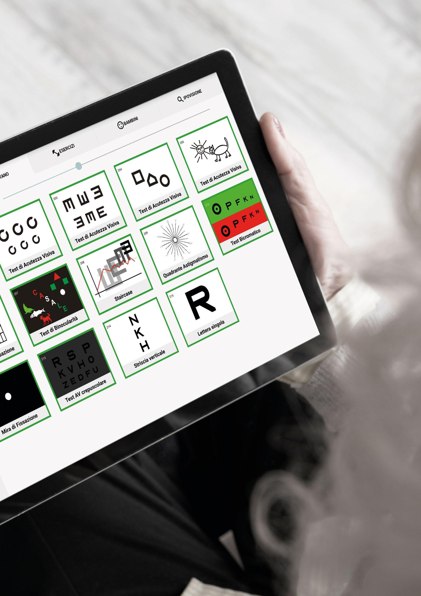Accesso a tutte le anteprime dei test del Digital Vision Care Tablet e ai tutorial per i prodotti di visual training e ipovisione.