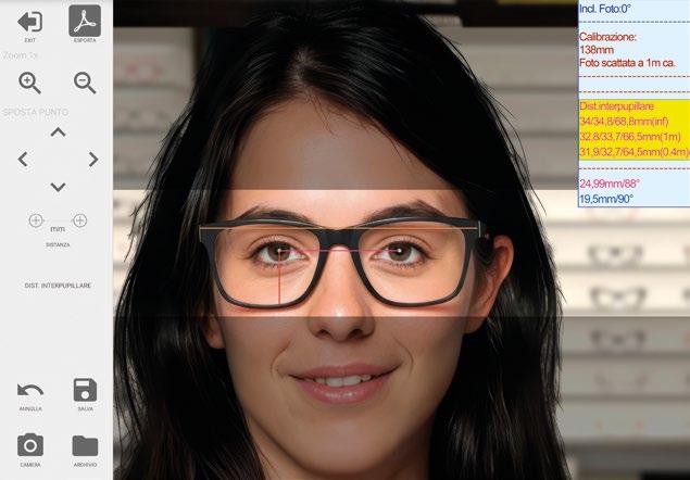 L’applicazione permette di ricavare qualsiasi misura lineare calibrando il sistema con una misura certa dell’occhiale (es.: lunghezza del frontale, indicata in rosso nell’immagine).