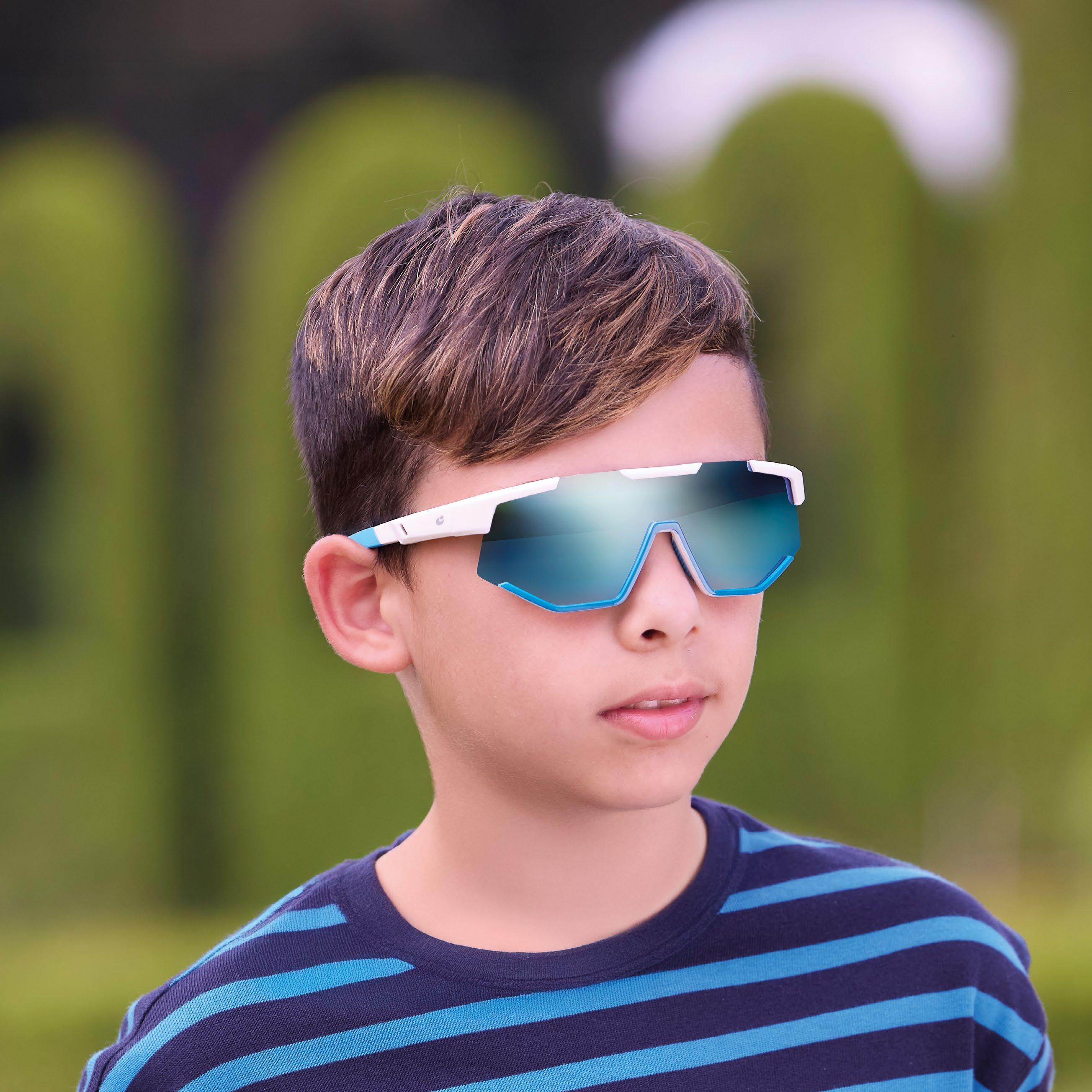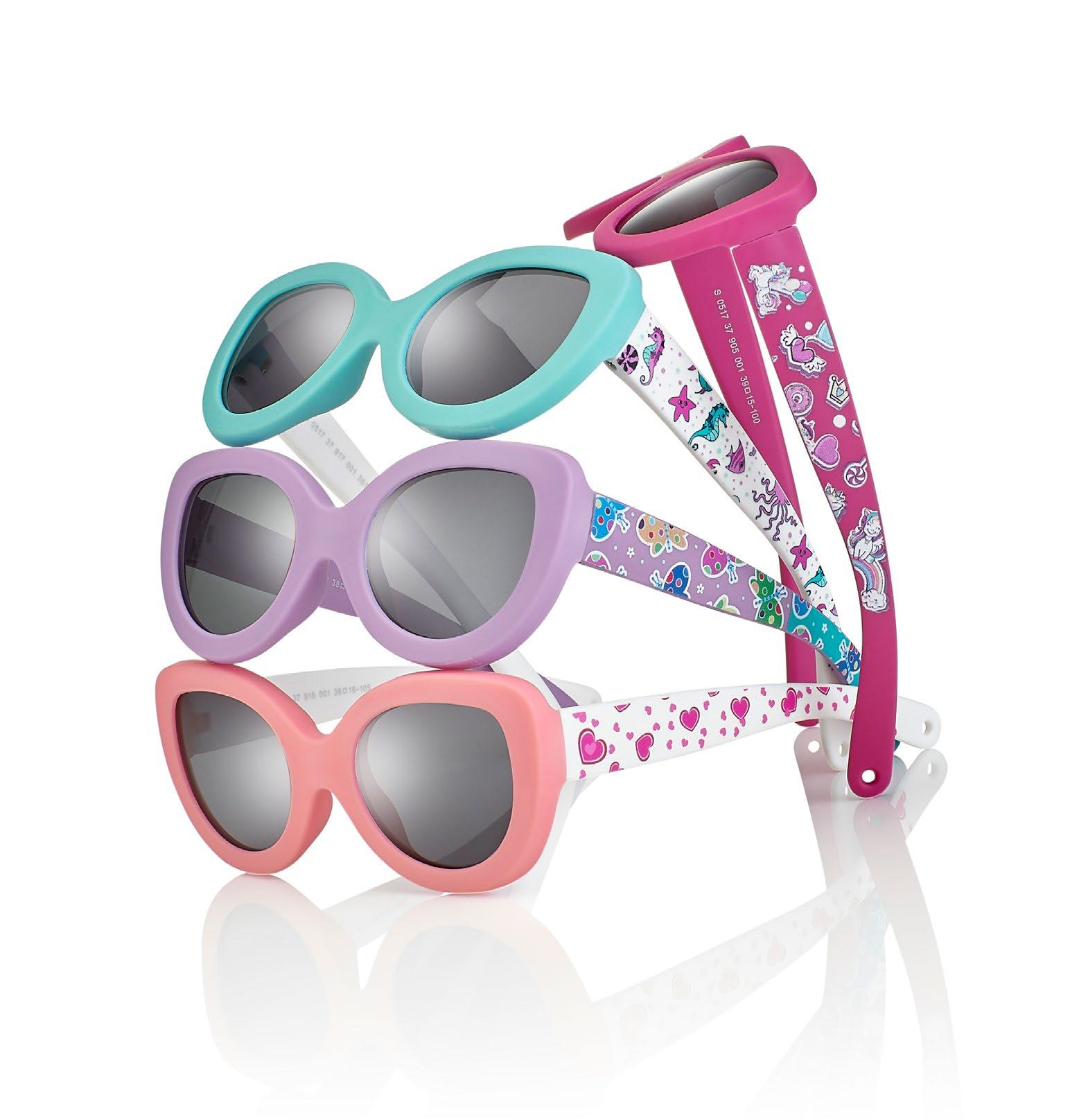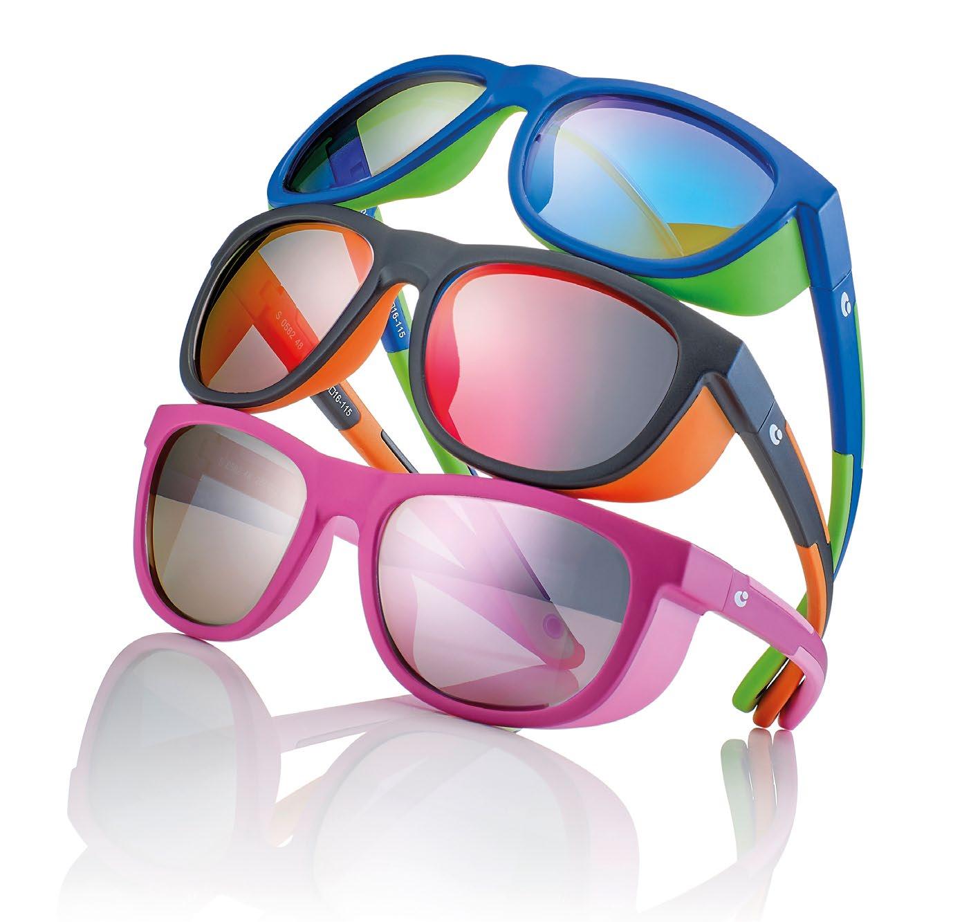 Lightweight, flexible and durable TR90 sunglasses with new design of wrap-around temples for a better fit. New colours taking inspiration from the graphic elements of teenagers’ favourite styles. Polarized filters with UVA-UVB protection for visual comfort.
