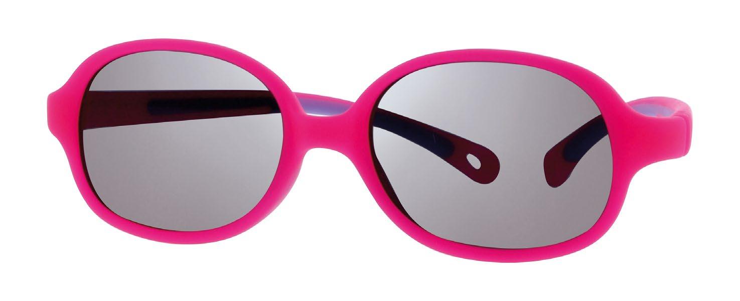 Occhiali da sole in pezzo unico con ponte anatomico. In materiale morbido, leggero, senza lattice e parti metalliche (ipoallergenico), con lenti resistenti agli urti (in policarbonato) per proteggere i più piccoli dai raggi solari UVA-UVB.