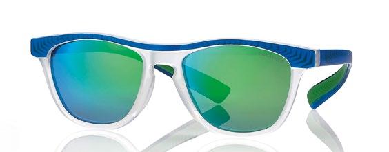 Occhiale da sole in TR90 leggero, flessibile e resistente con aste avvolgenti con doppia iniezione per aumentare la stabilità. Lenti in policarbonato polarizzanti per un maggior comfort visivo.