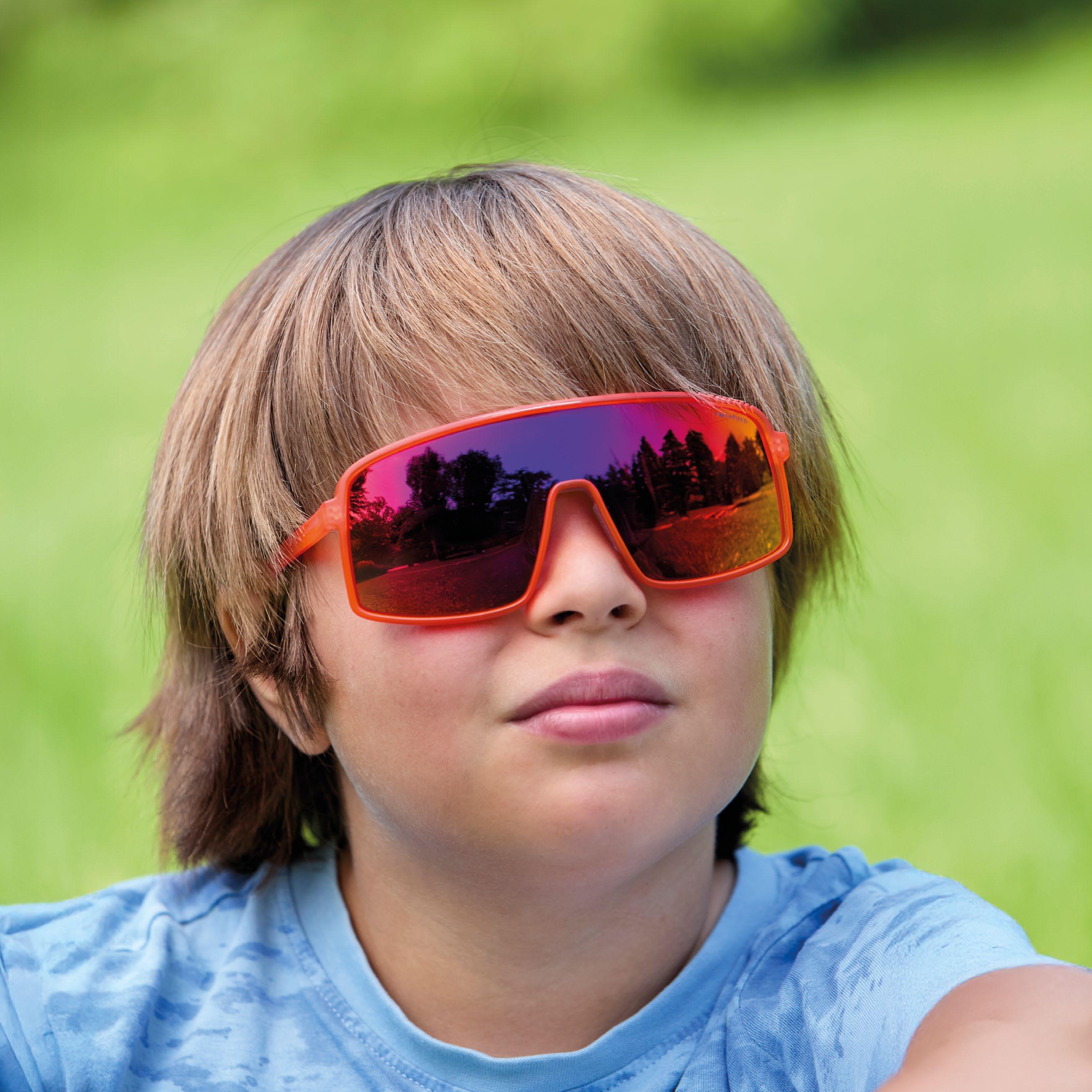 Occhiale da sole in TR90 leggero,flessibile e resistente con aste avvolgenti con doppia iniezione per aumentare la stabilità. Colorazioni ispirate alle passioni dei più piccolo. Filtri polarizzati per un maggior comfort visivo.