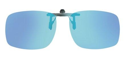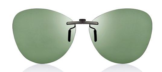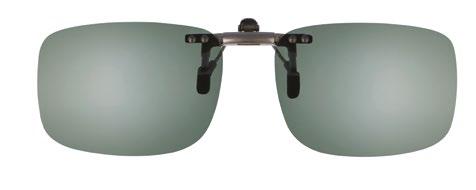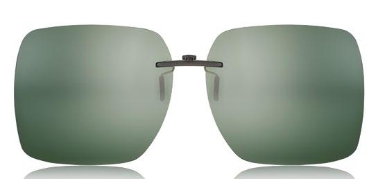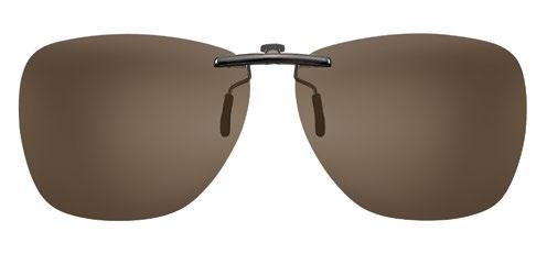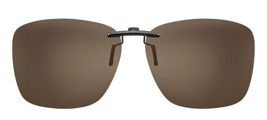 Clip-Ons with minimal mechanism, trimmable lenses and anti-scratch clips. Polarized lenses for maximum protection against UVA and UVB rays.
