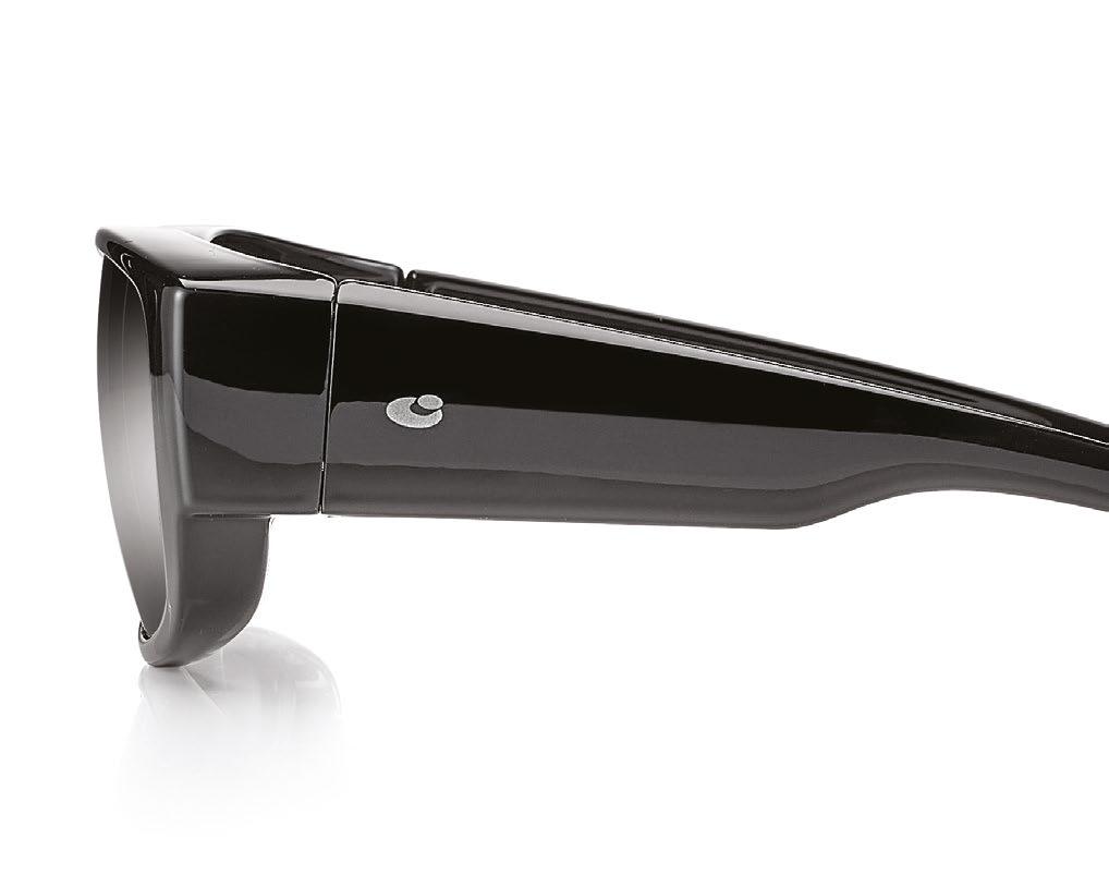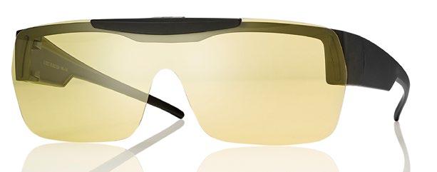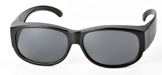 To be worn over prescription eyewear. Protect the eyes 100% from UVA and UVB sun rays. Lightweight and comfortable. The wrap-around shape and polarized quality filter reduce eye fatigue.