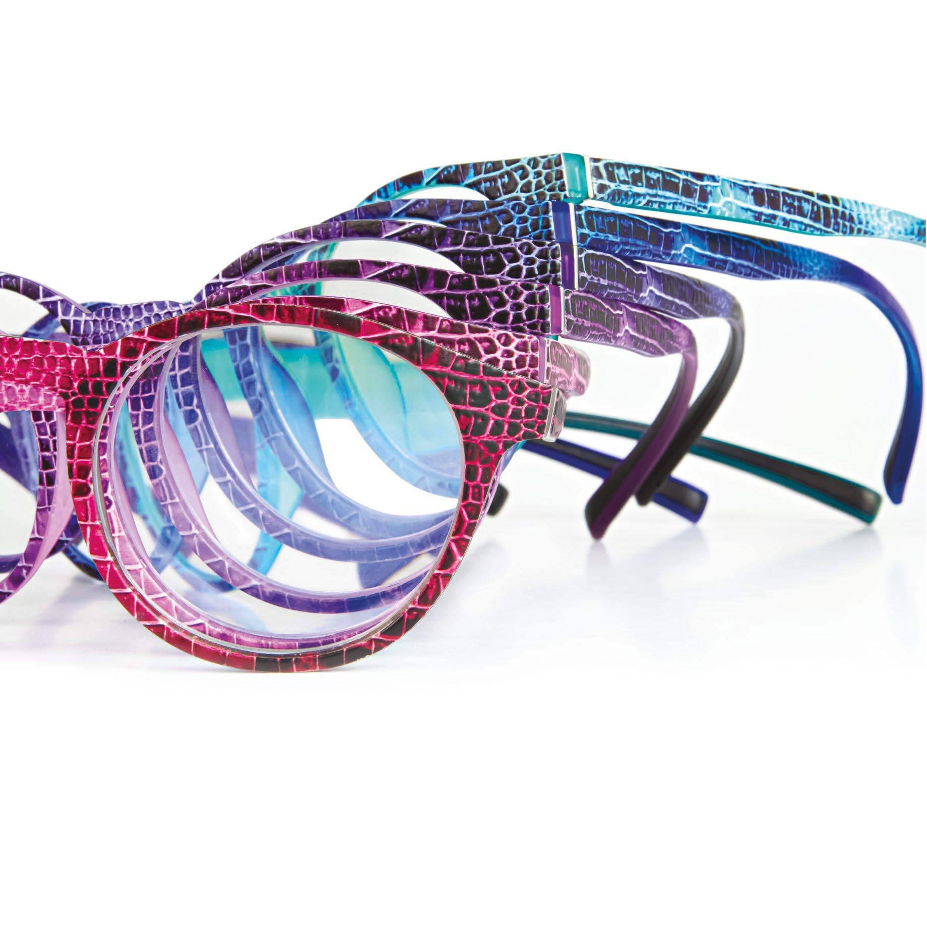 Snake pattern in six different shades on front and sides. The 3D digital printing technology make Lisboa Snake reading glasses smooth to the touch and highlights all chromatic shades.