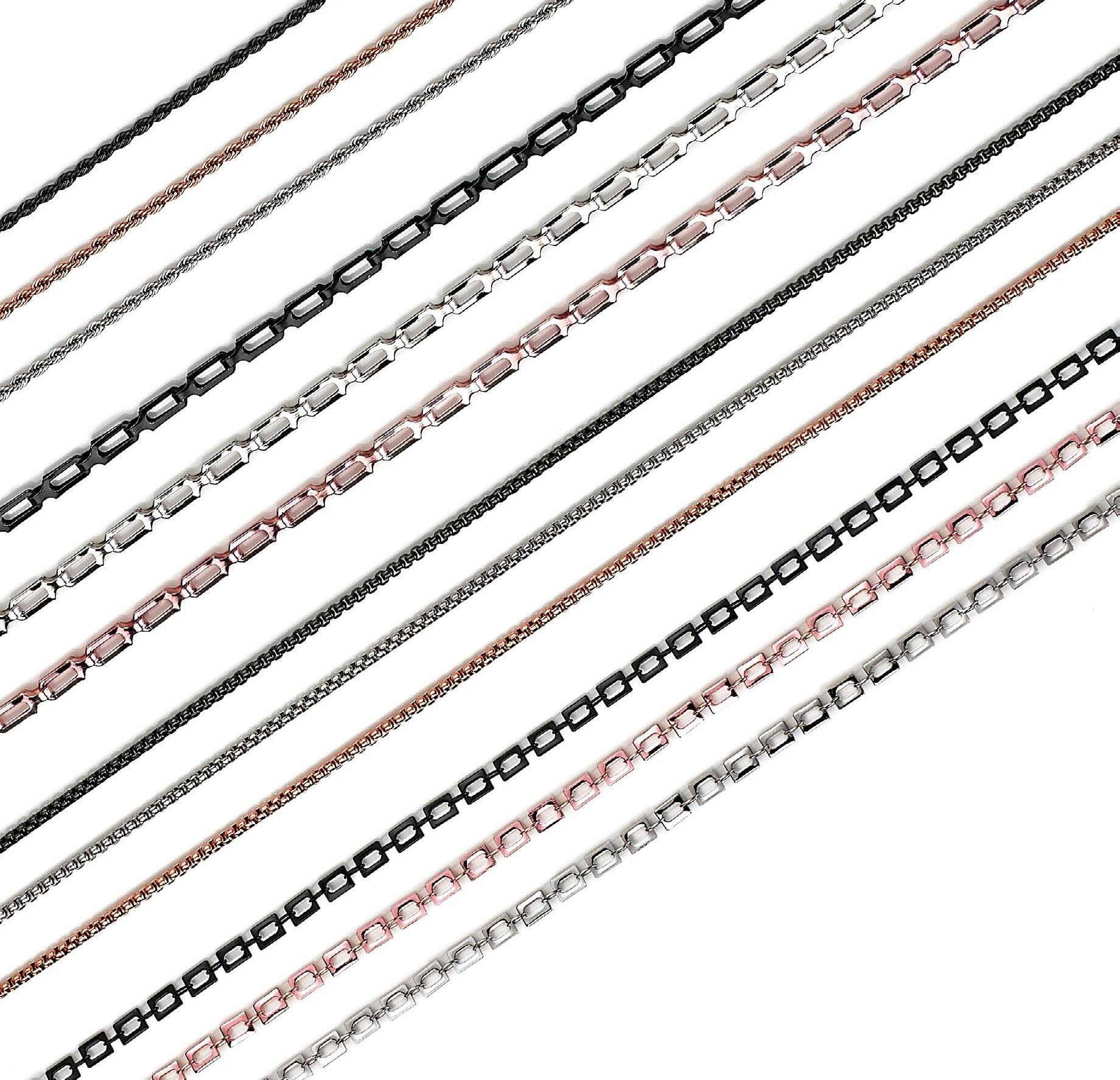 Catenelle in metallo ultraleggere. 12 catenelle. Modelli assortiti. In pratico vassoio. Ref. 09430