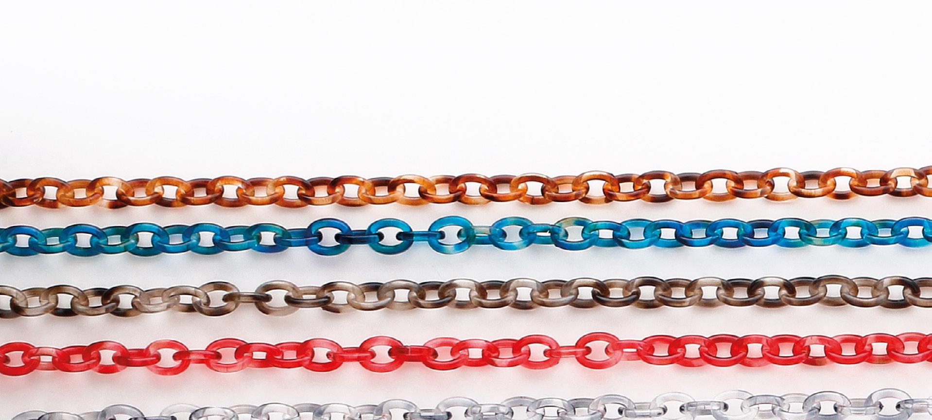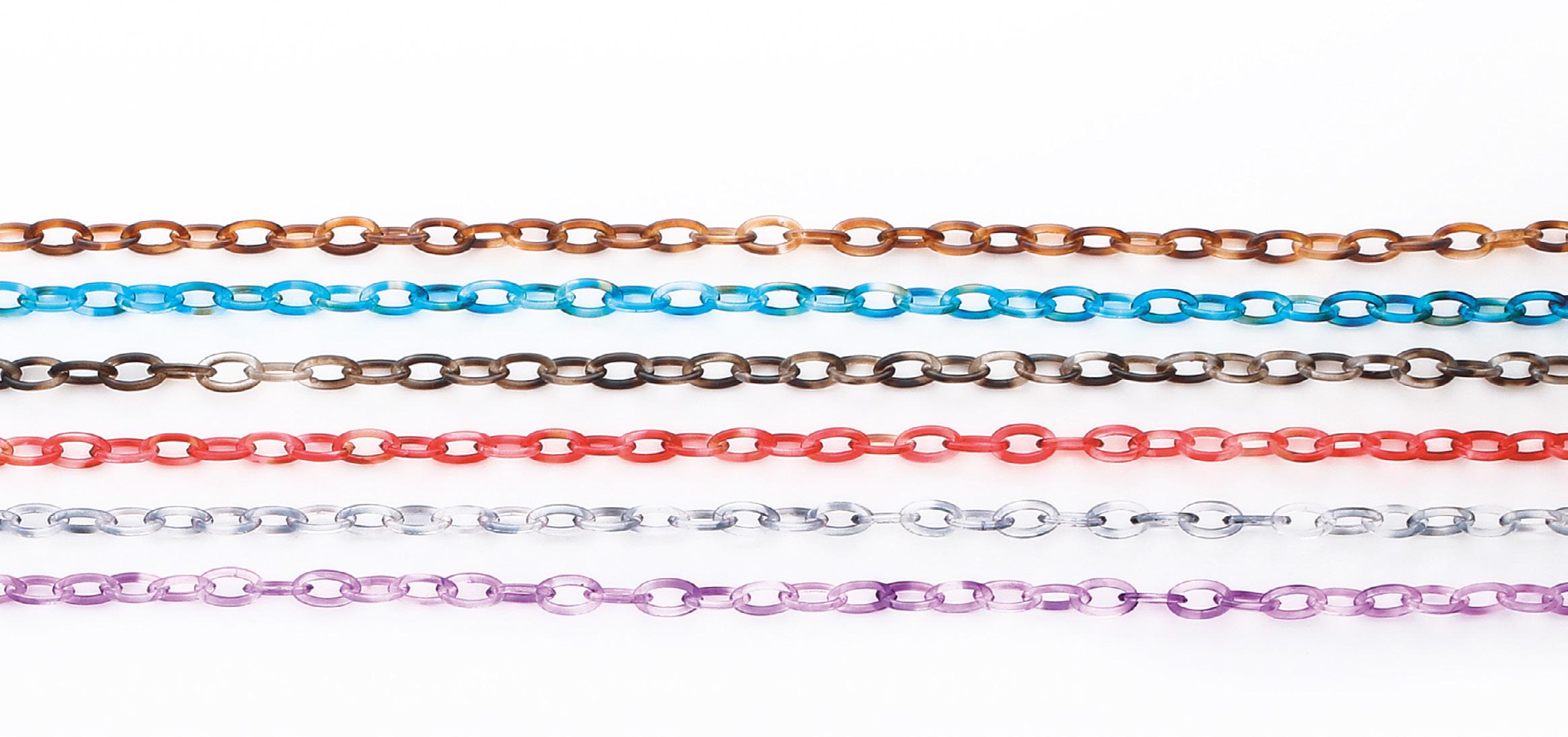 Catenelle ultraleggere in plastica disponibili in due misure e 6 varianti colore.